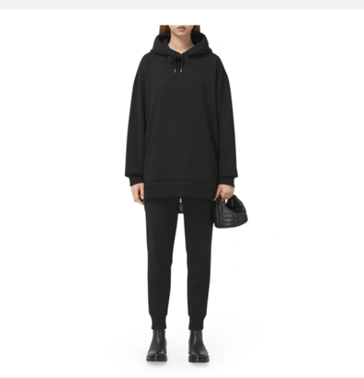 BURBERRY 巴宝莉 女士格纹拼接棉质大廓形连帽衫卫衣 黑色 8044990 A1189
