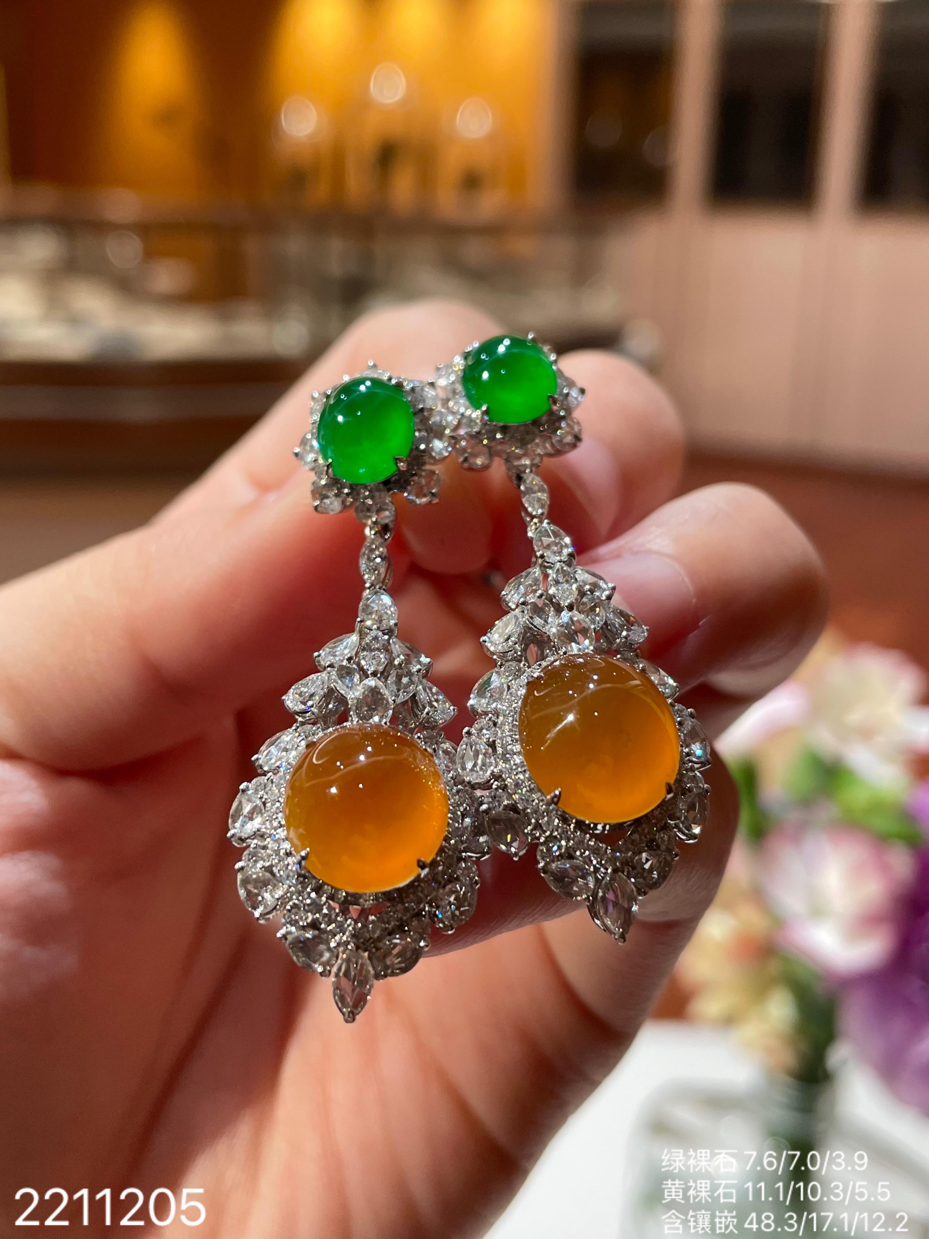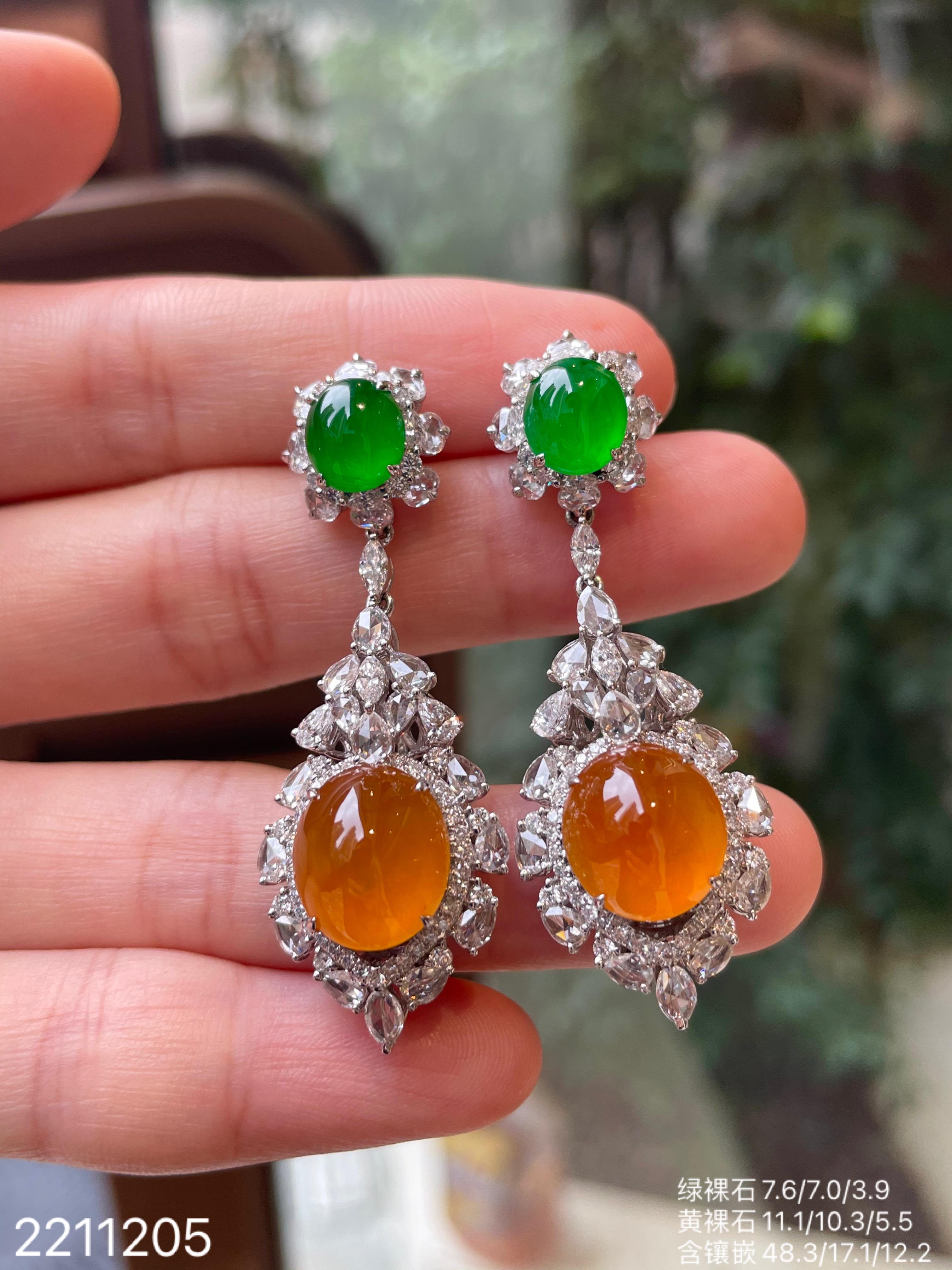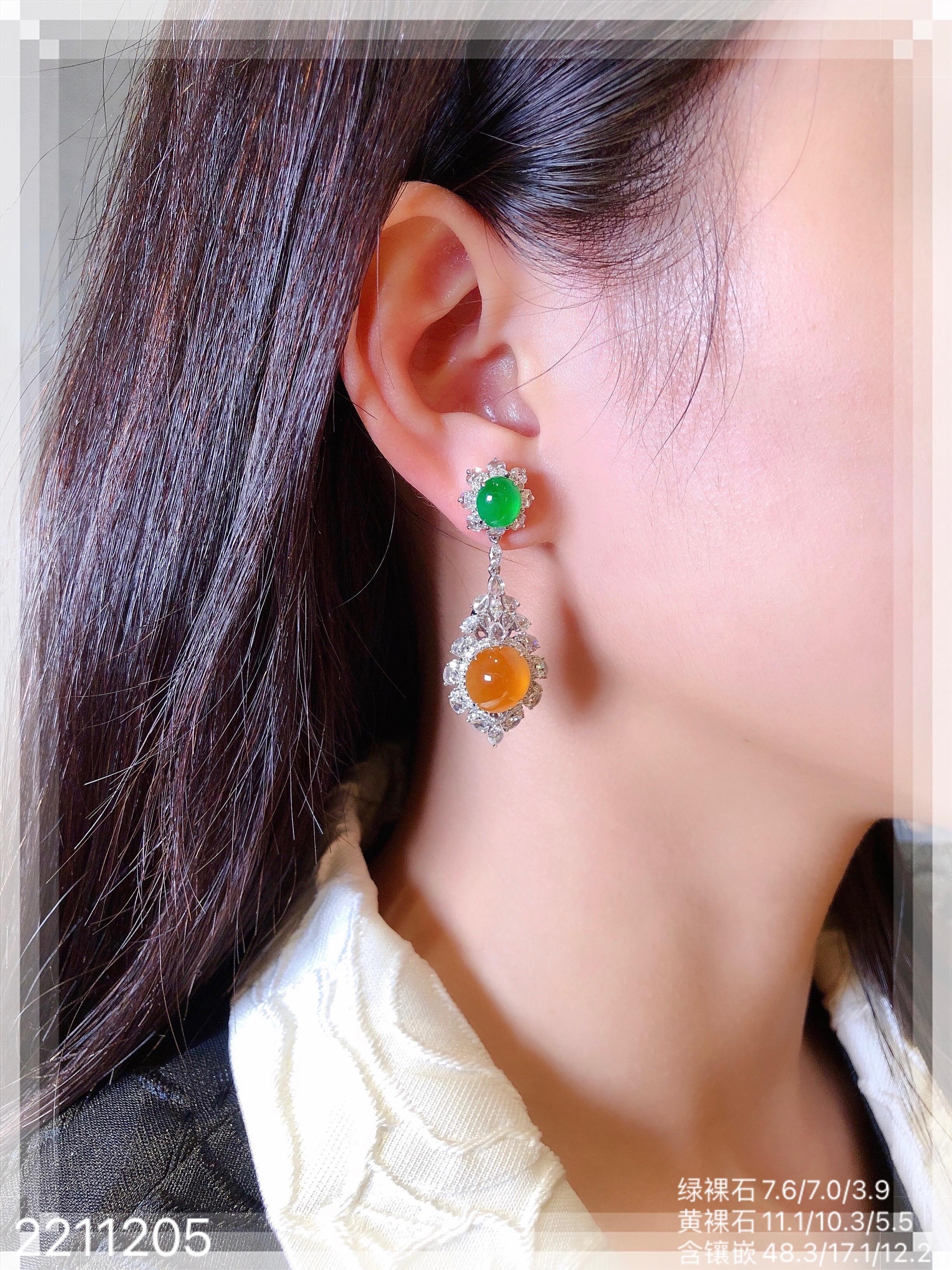2211205,老坑艳绿+黄翡蛋面耳坠,具体价格微信咨询。