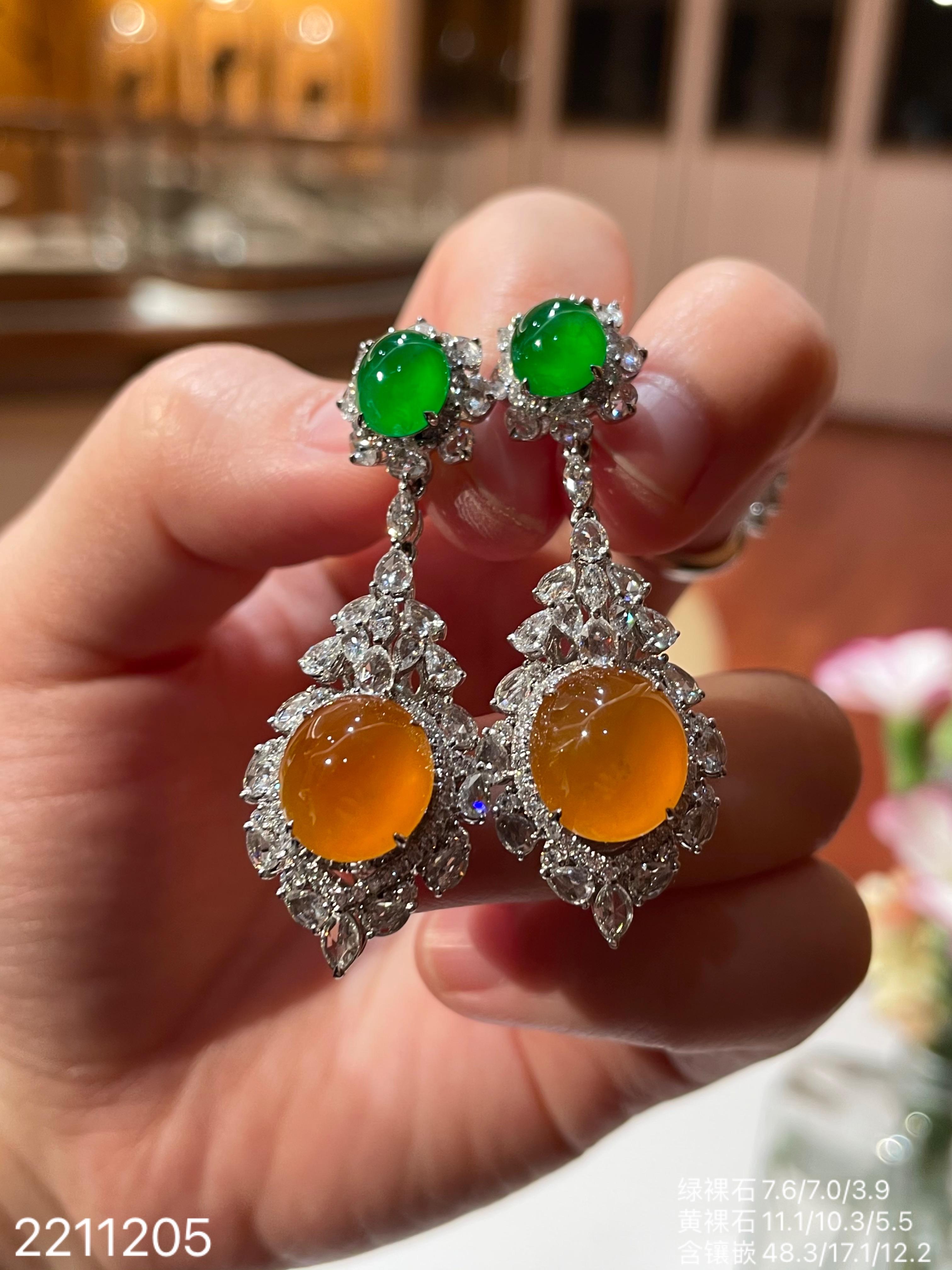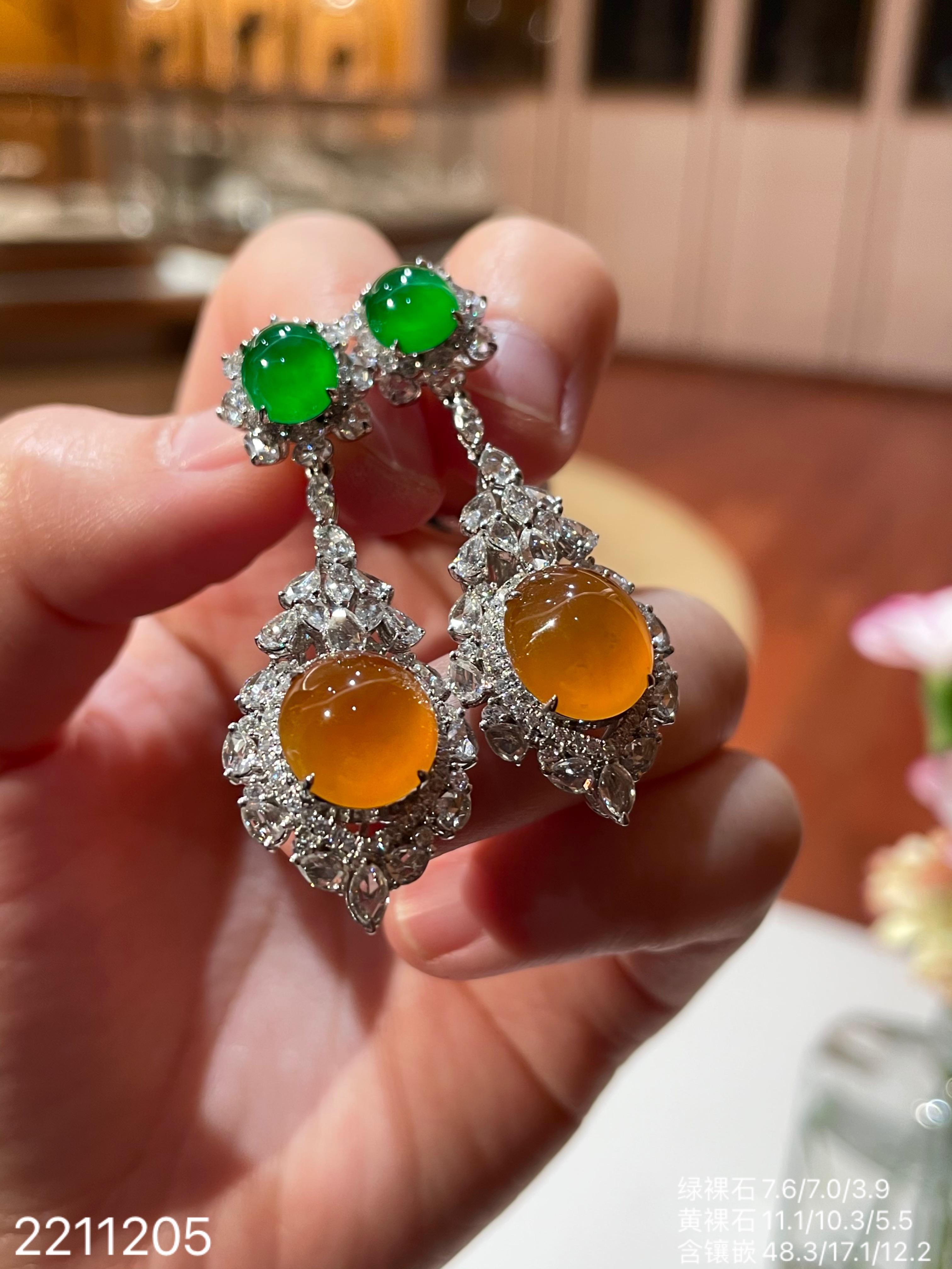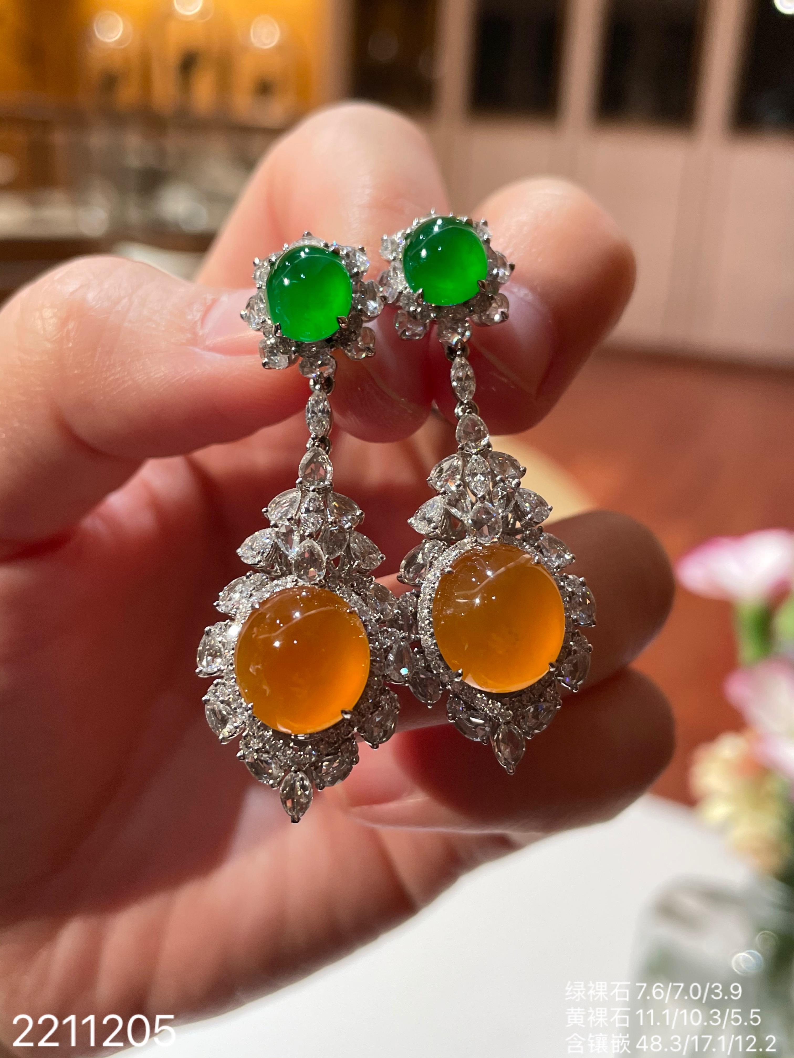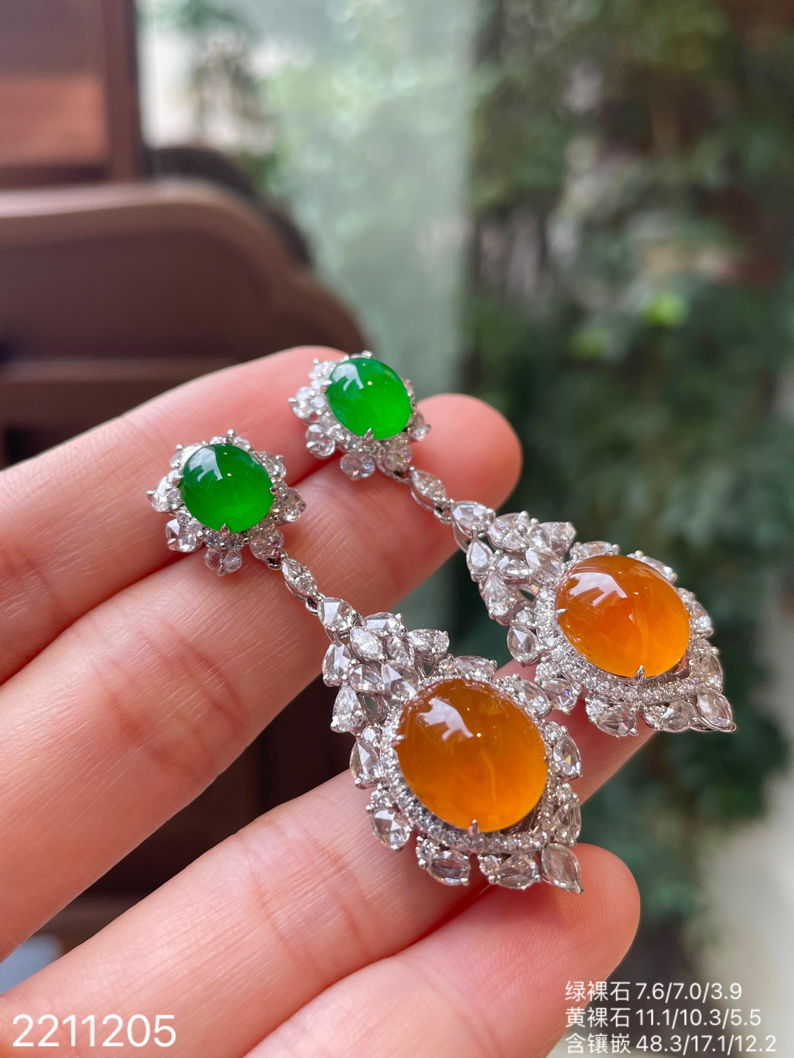 2211205,老坑艳绿+黄翡蛋面耳坠,具体价格微信咨询。