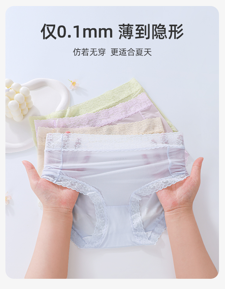 【200积分+29元】【4条装】熳洁儿 无痕冰丝速干女士内裤5A抑菌轻薄透气聚乳酸24762101