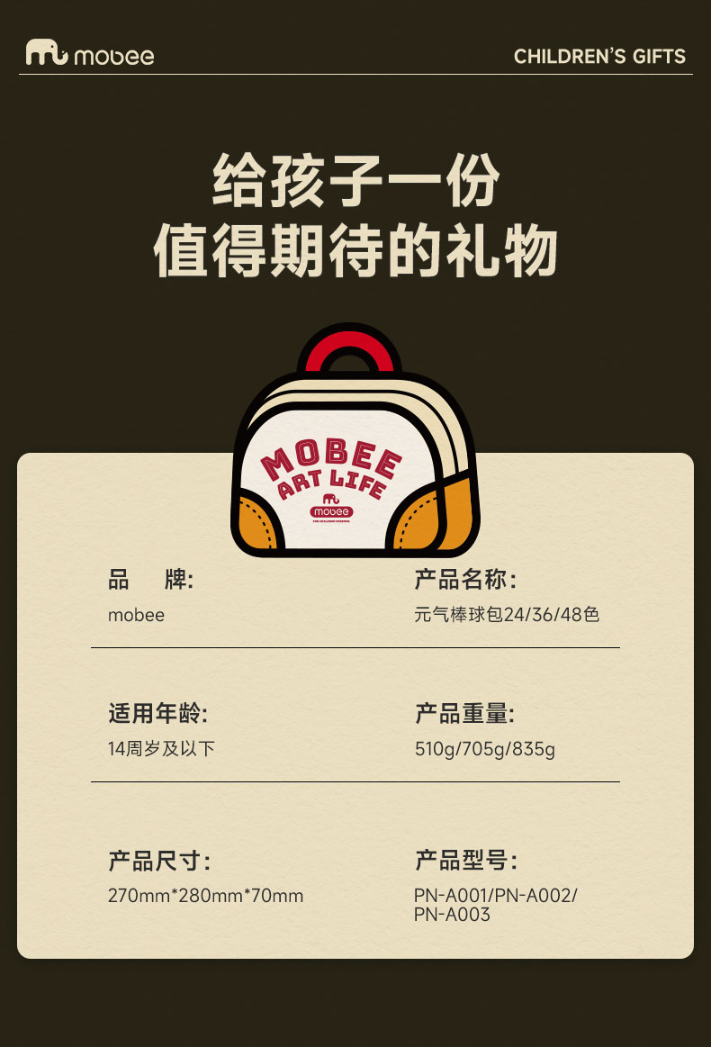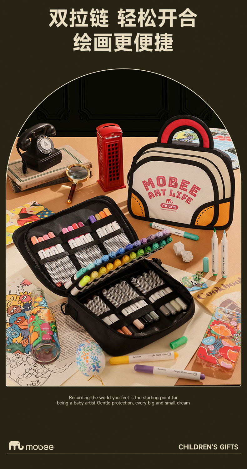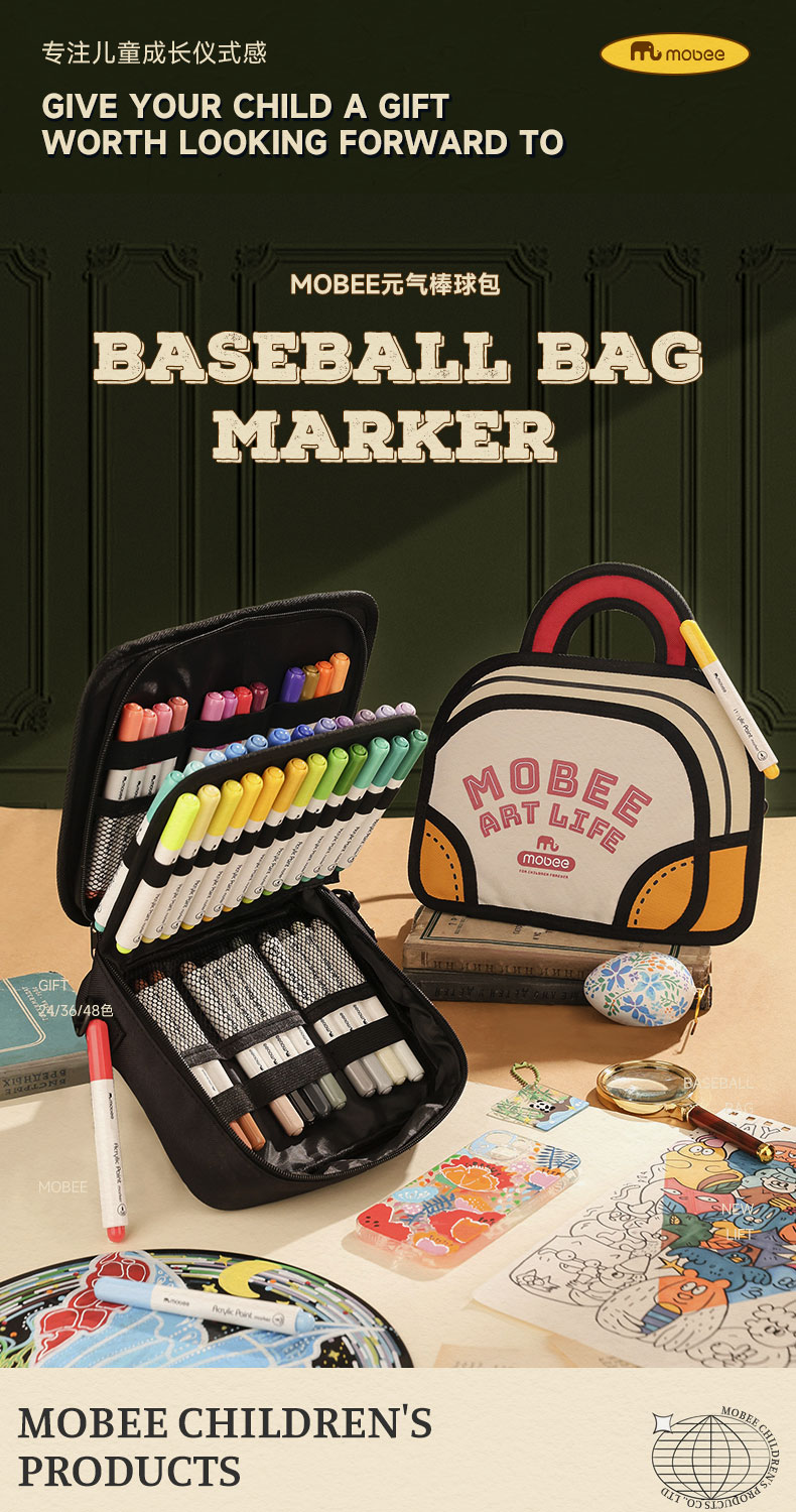 【赠棒球包】mobee元气棒球包丙烯马克笔套装 画画包 多材质可覆盖24/36/48色可选 双拉链轻松开合 棒球包丙烯笔 绘画更便捷