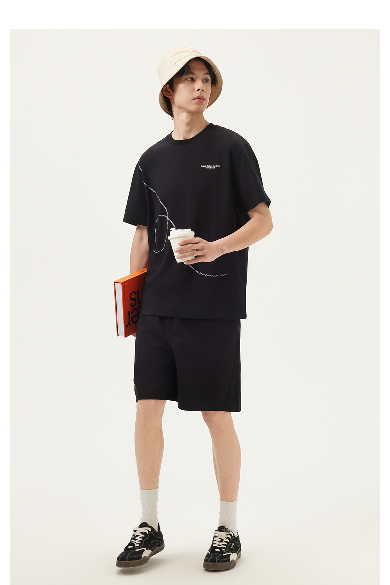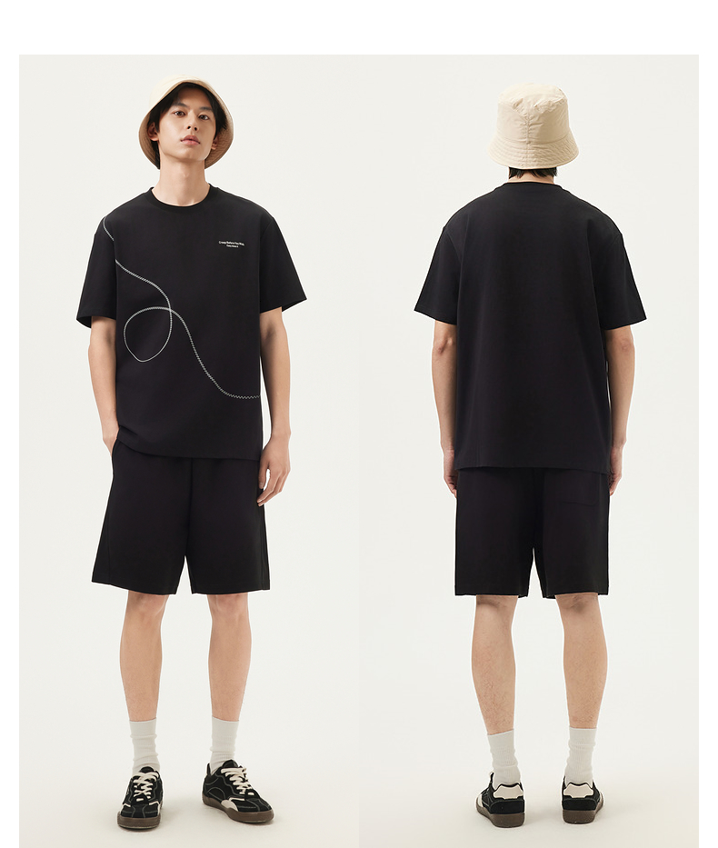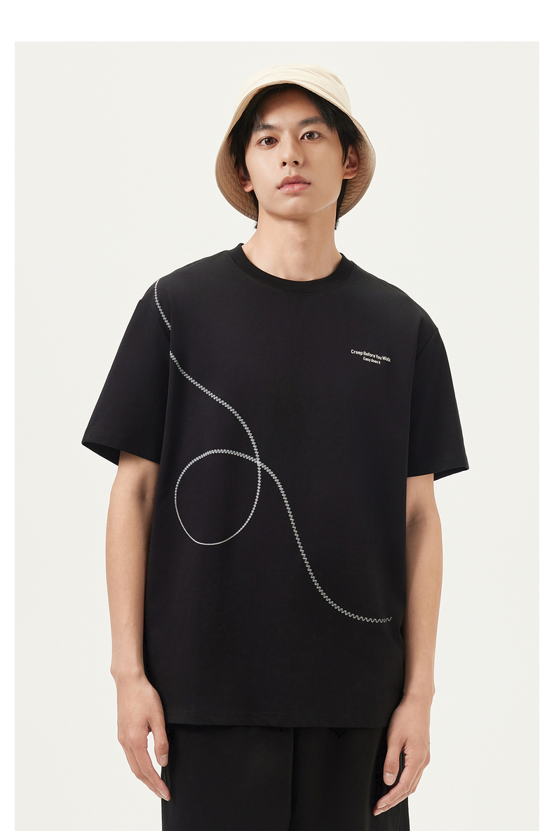 gxg.jeans男装 25年夏新款个性线条简约时尚宽松男士圆领短袖T恤