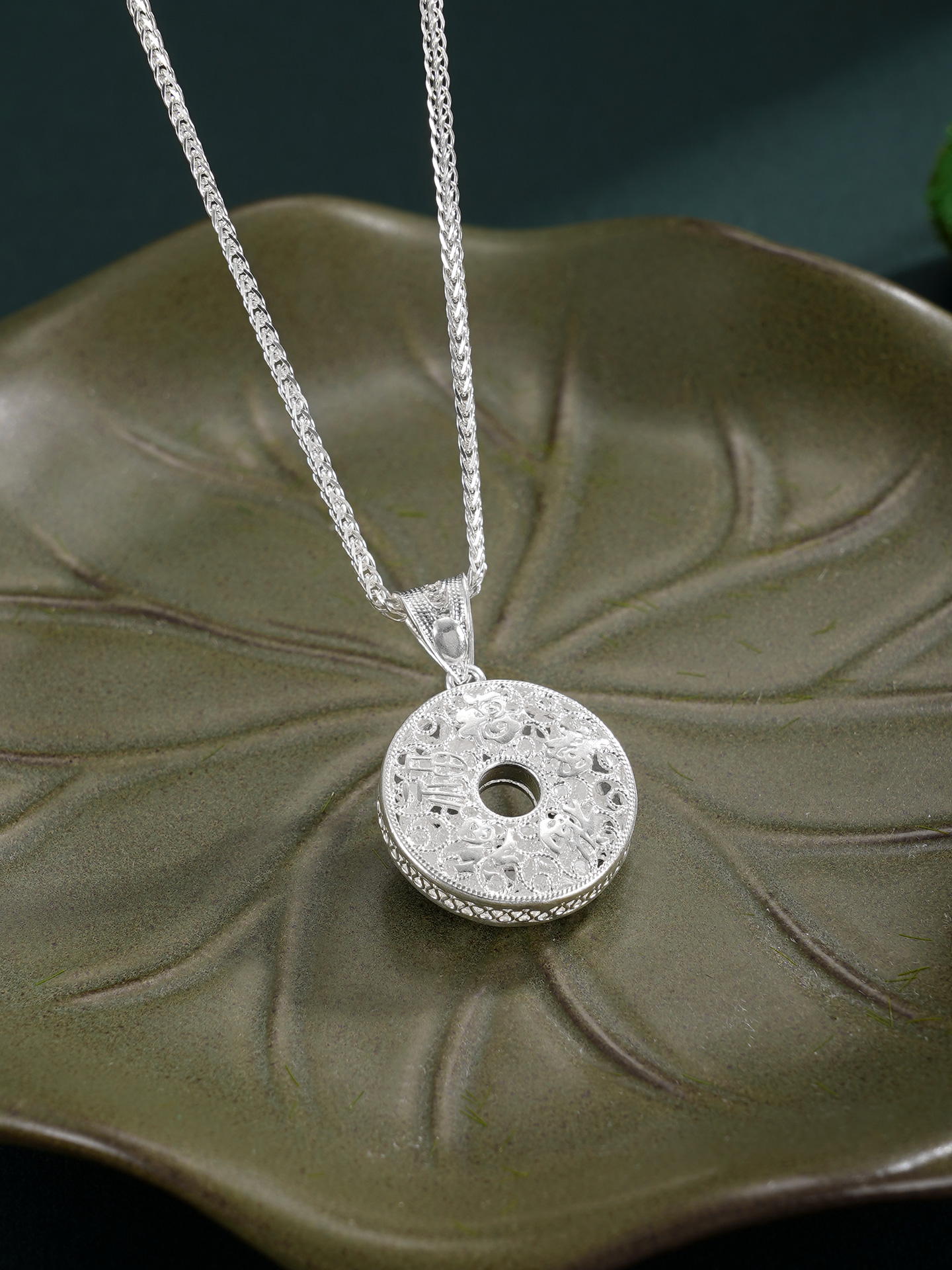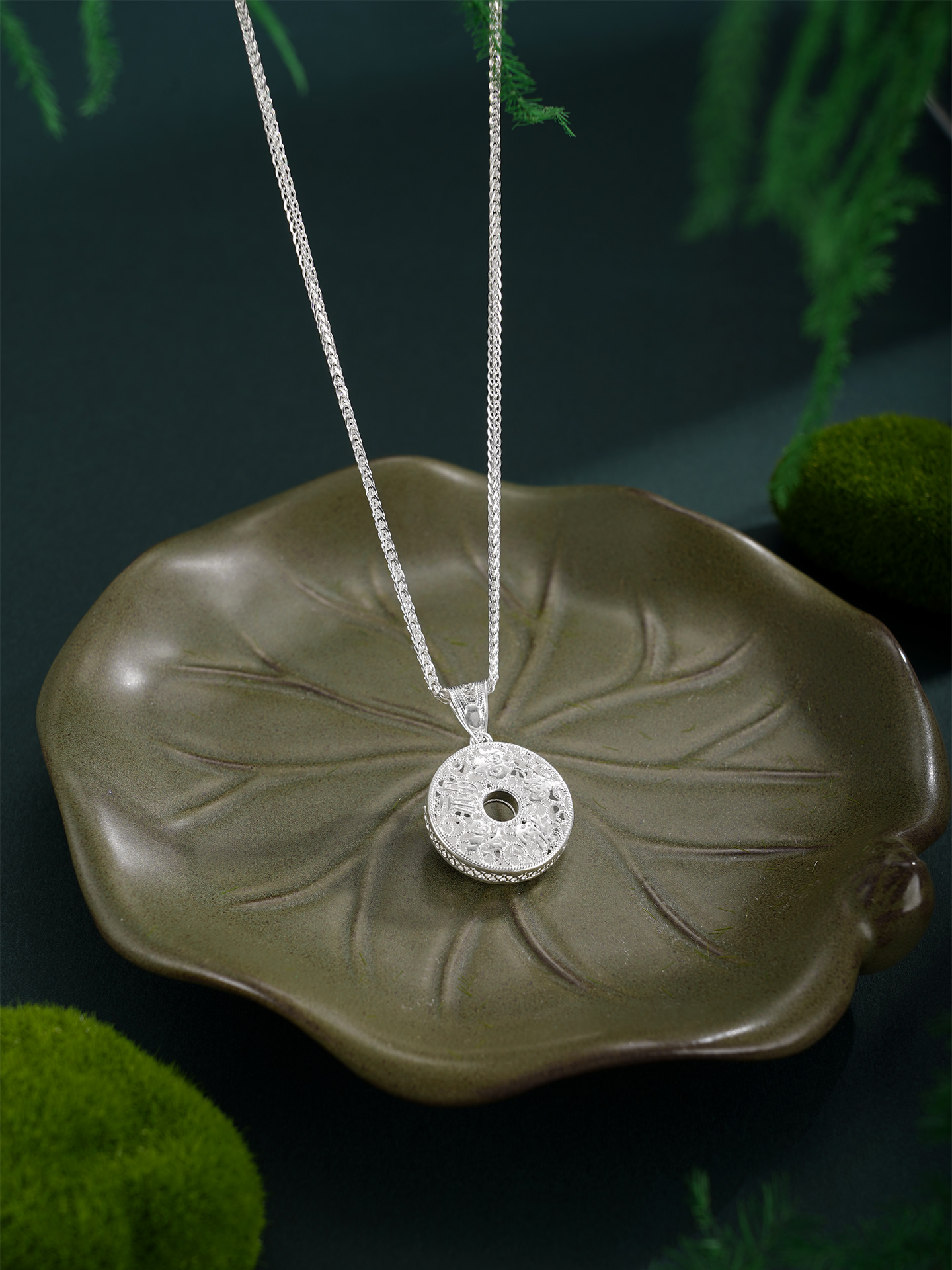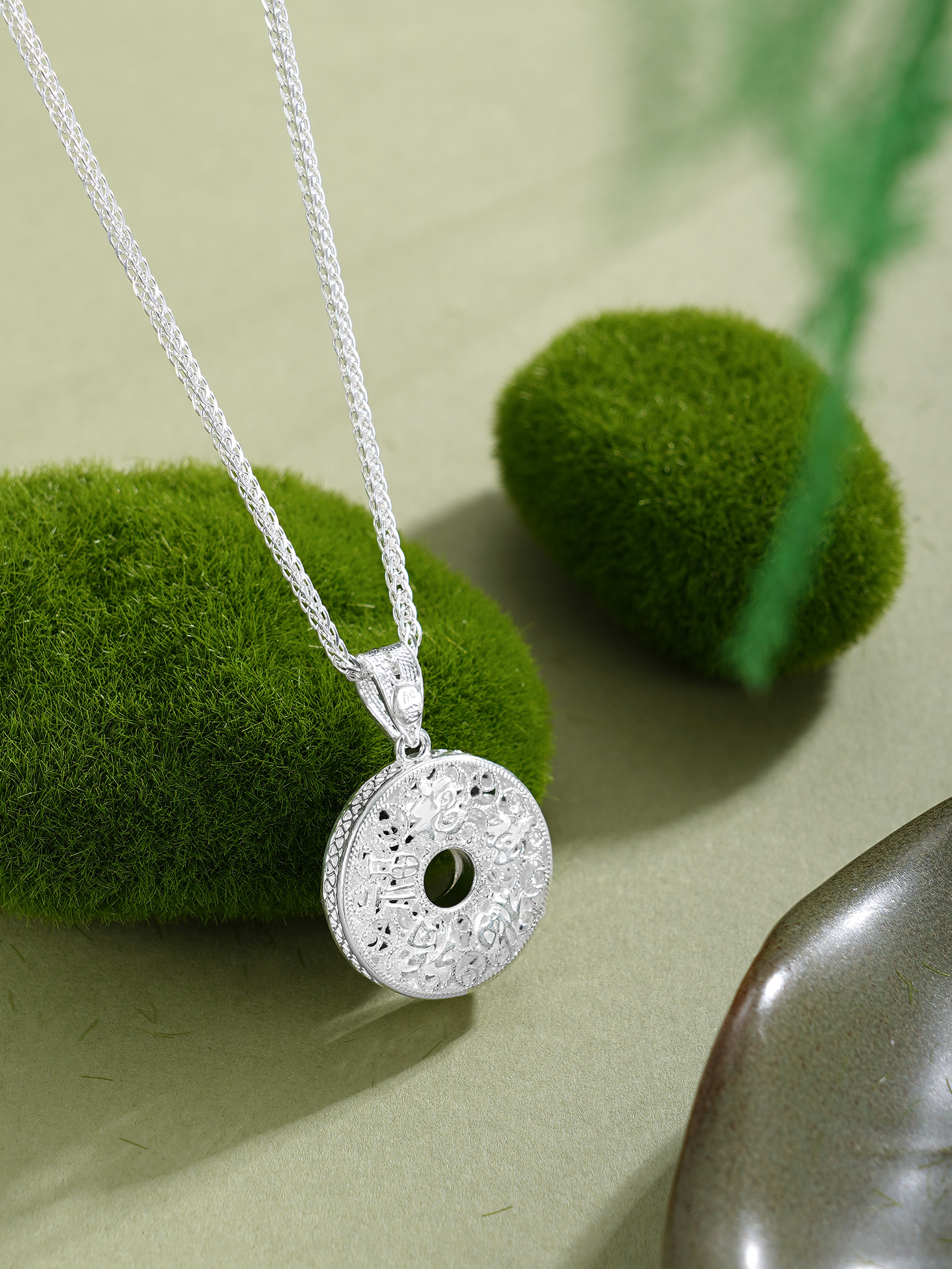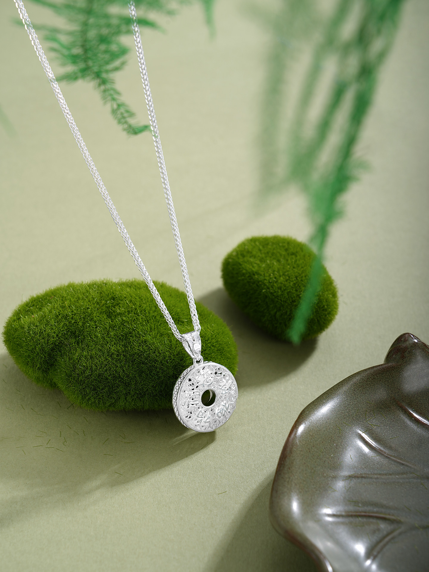 【寓意】:两条锦鲤于平安扣吊坠之上悠然翩游,取锦鲤之吉祥象征,代表着赠礼之人“好运附体,双喜临门”的美好祝福。