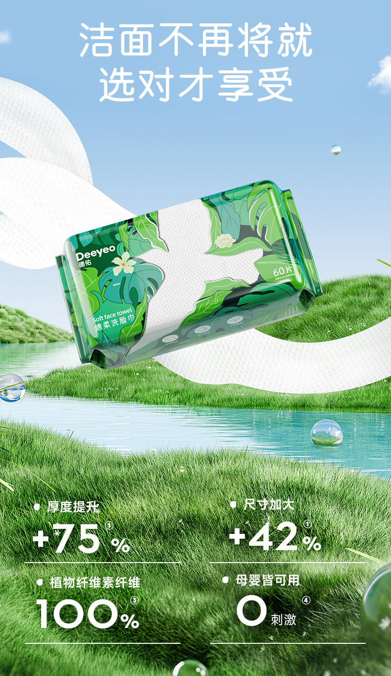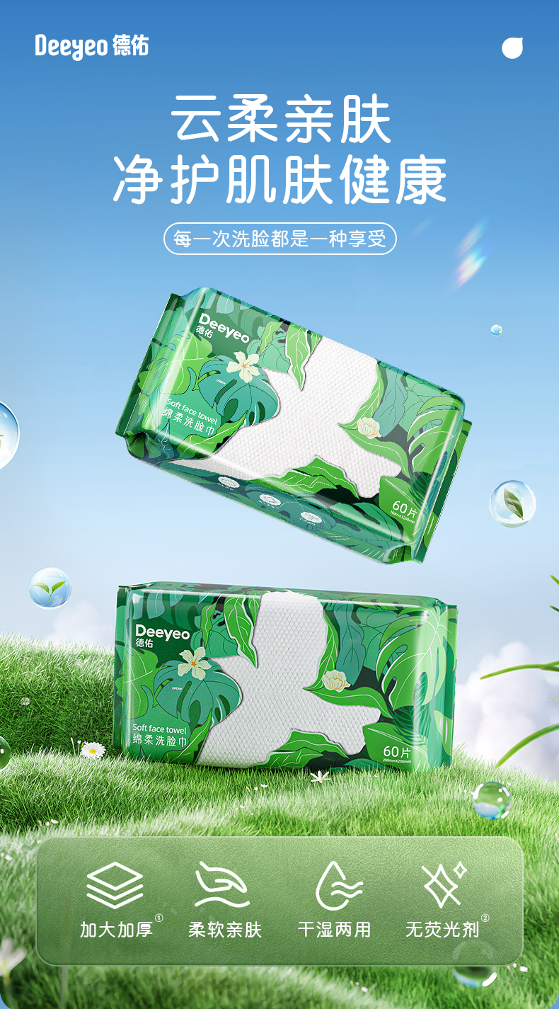 德佑 飞鸟一次性抽取式洗脸巾60抽*6包 干湿两用绵柔巾 云柔亲肤 48小时发货