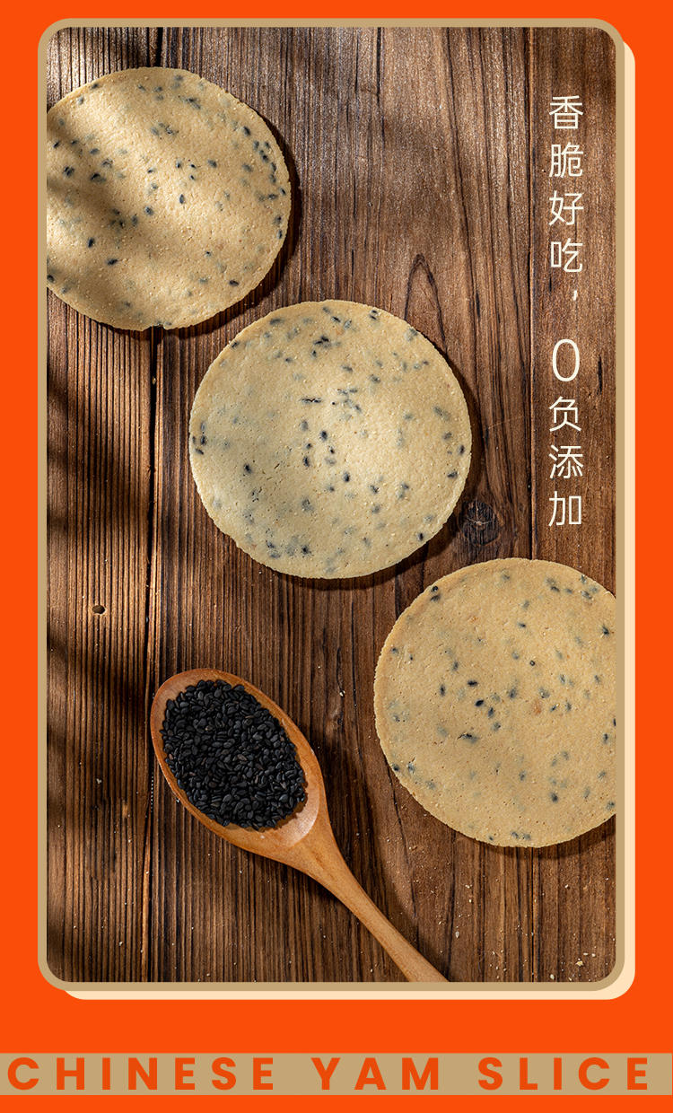 【配料表】鲜铁棍山药(含量≥60%)全麦粉,鸡内金3%,黑芝麻,大豆油,食用盐