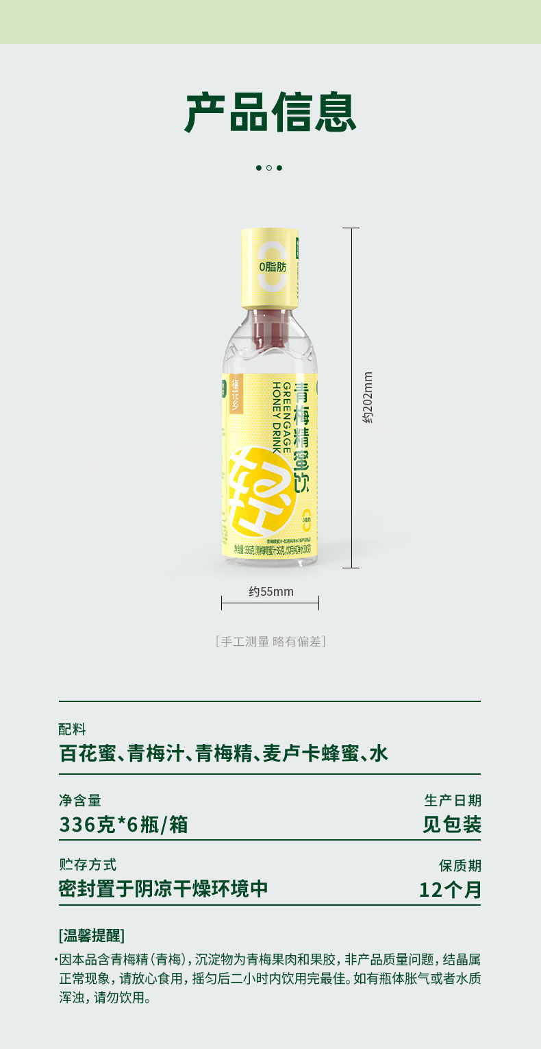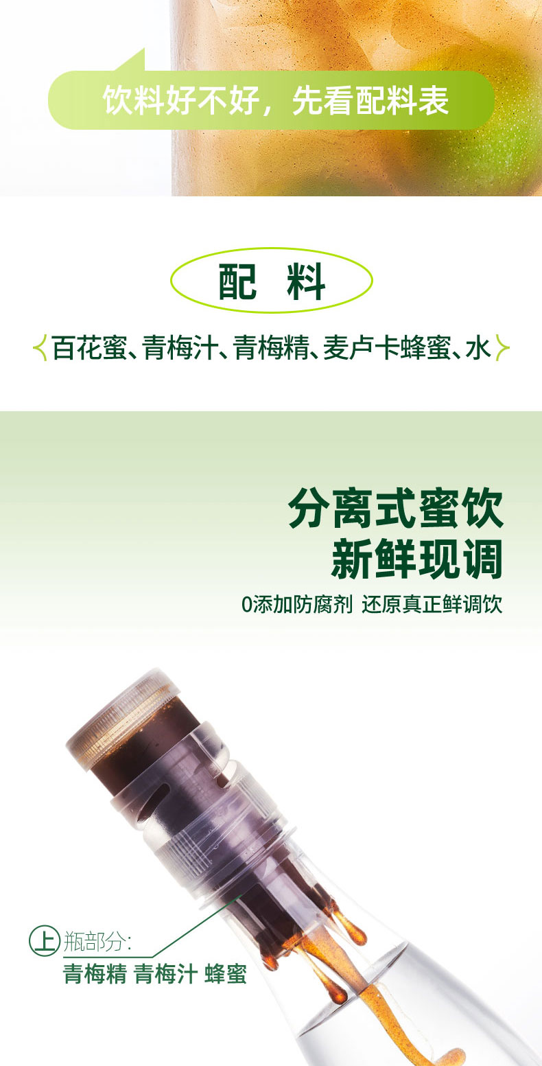 【2赠1】梅花乡 新版青梅精蜂蜜水分离式0脂无添加便携饮料336g*6 整箱