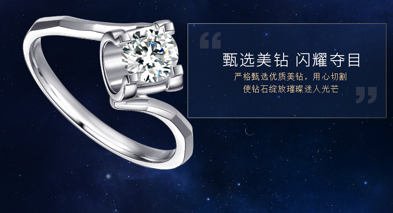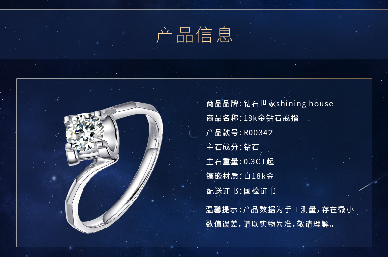 【甄选钻饰】【专享】钻石世家 18K金钻石戒指 50分钻石戒指(50分,M-N色,SI净度,国检,12号圈)
