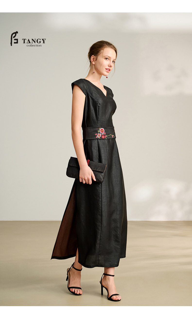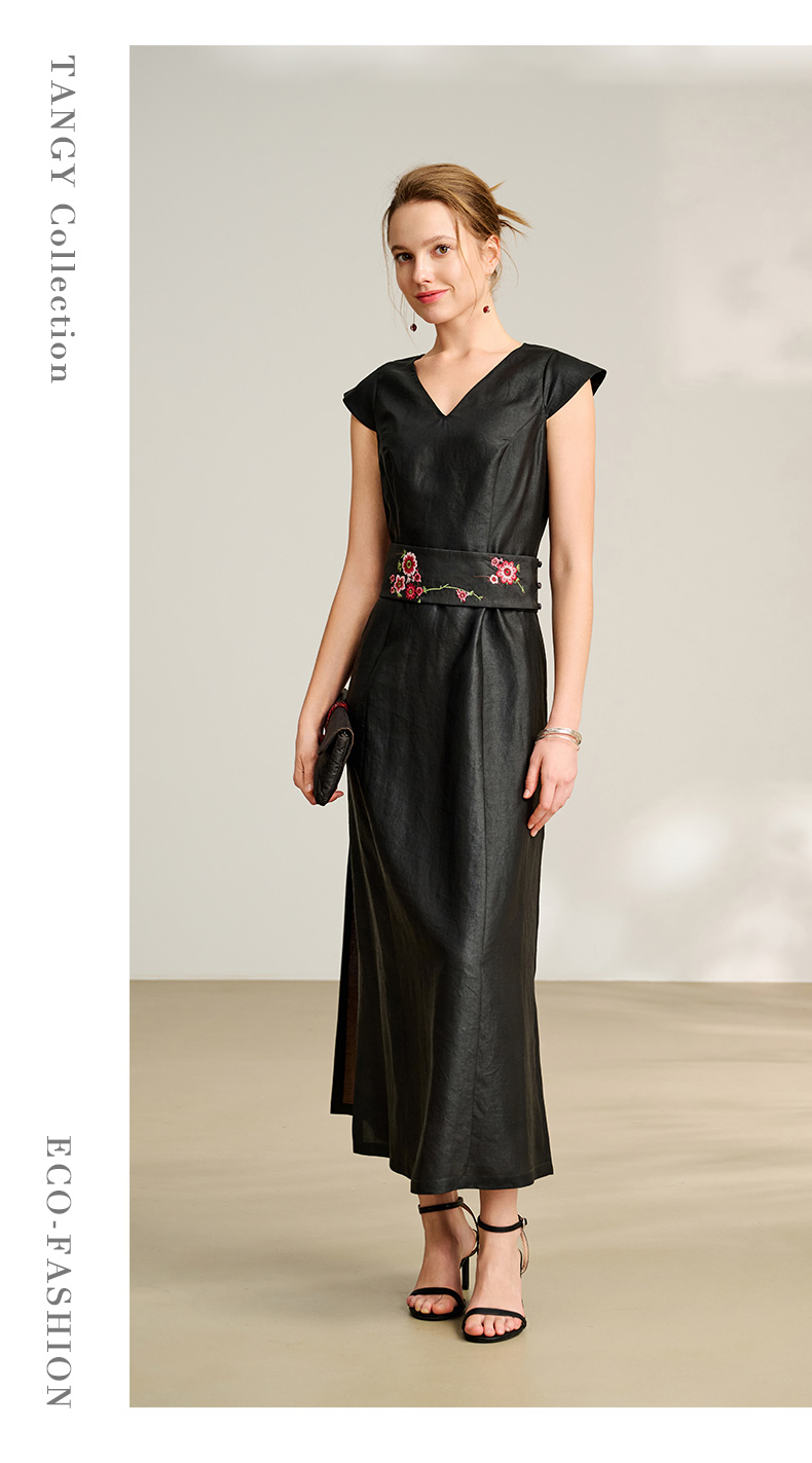 TANGY Collection/2025天意精品春季新品中国风女士莨绸连衣裙