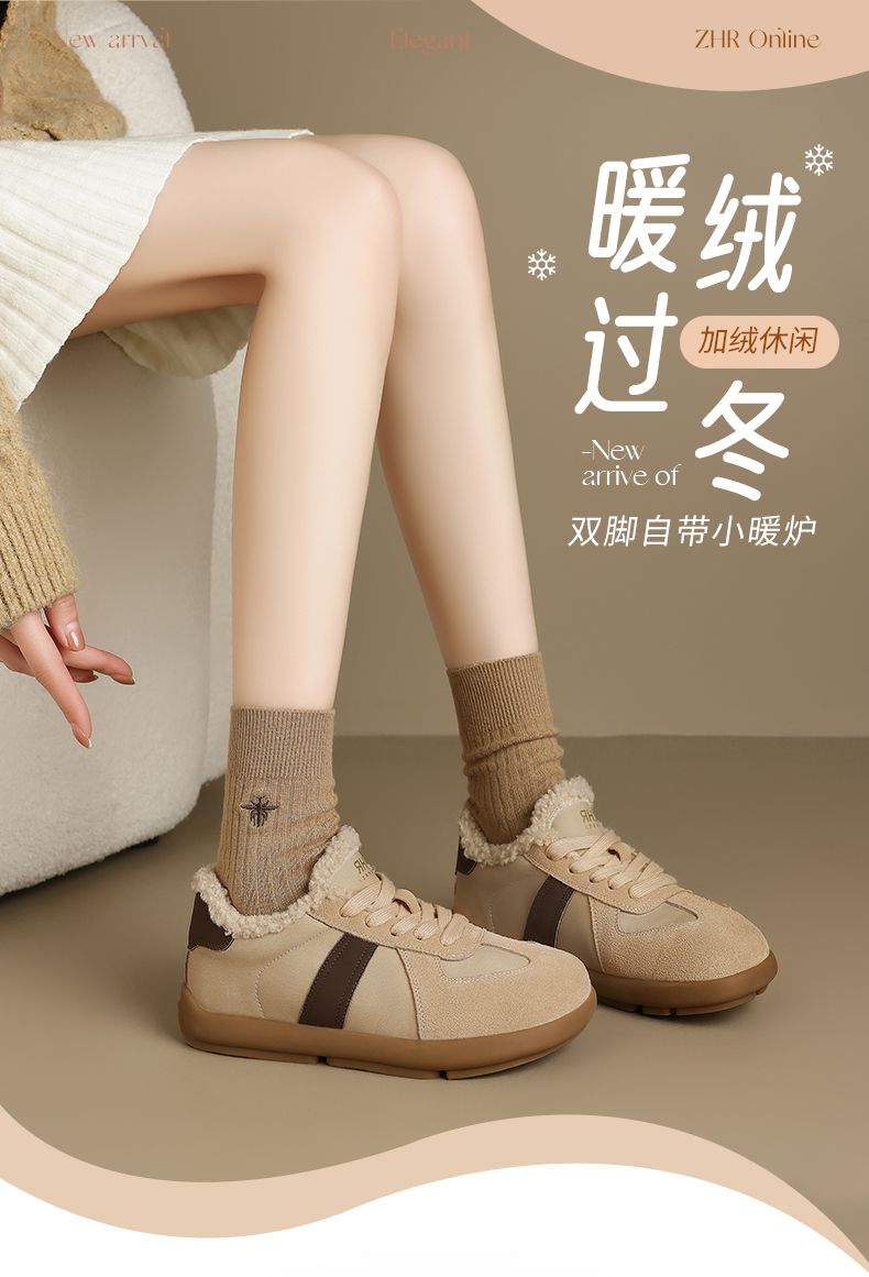 ZHR则则加绒德训鞋冬季美拉德防寒保暖超软棉鞋百搭休闲鞋女