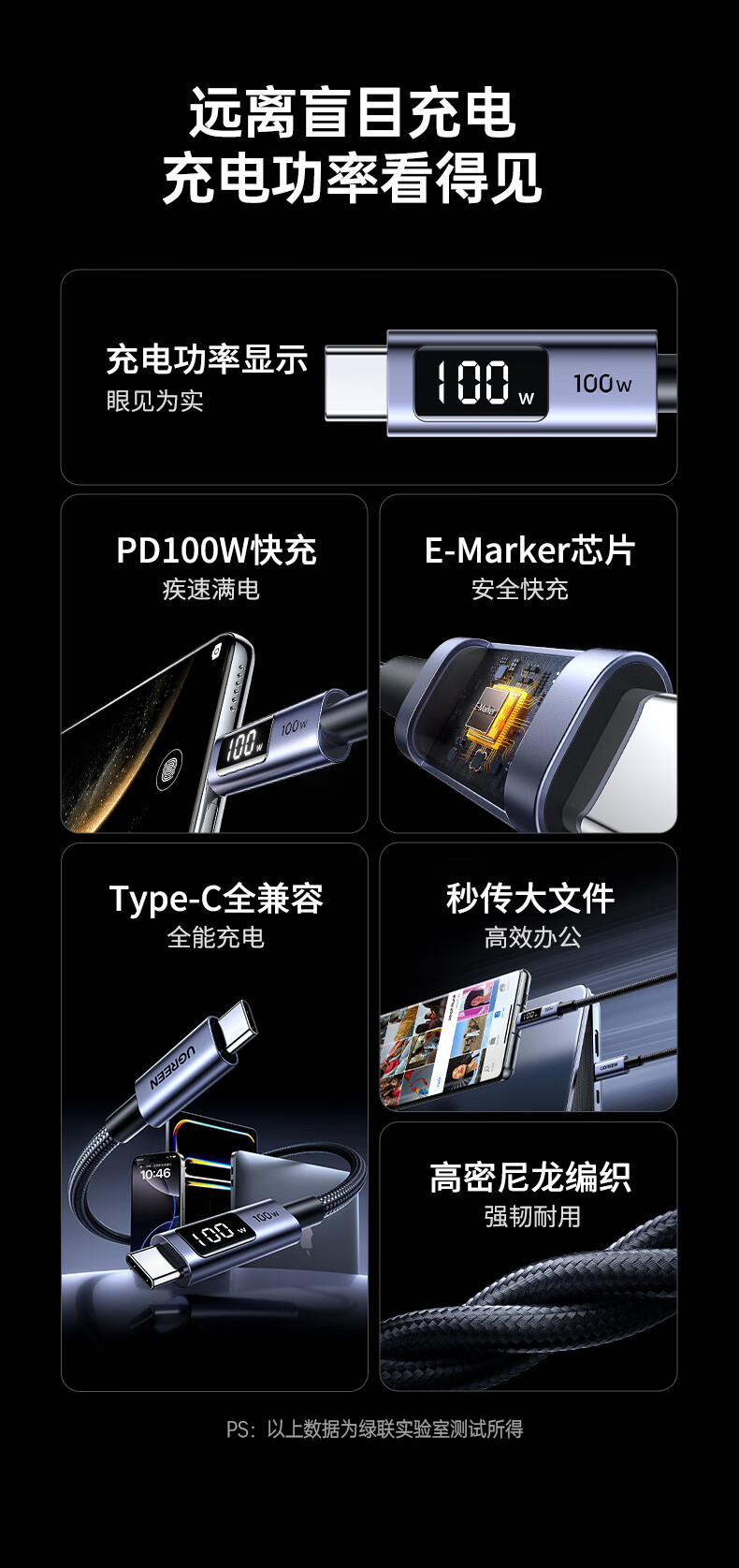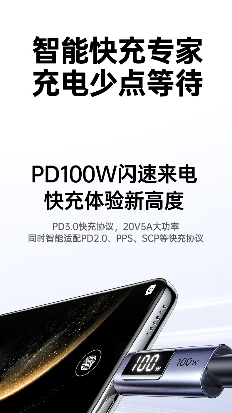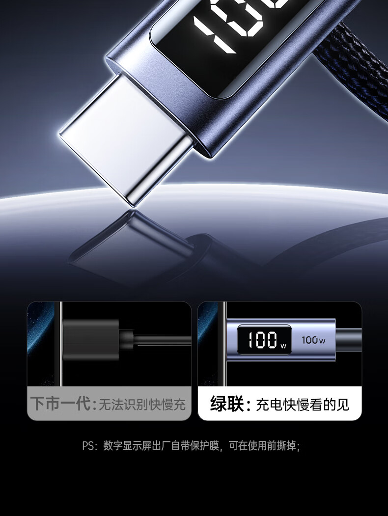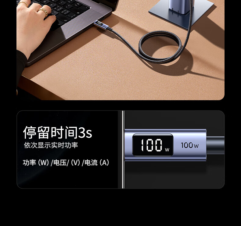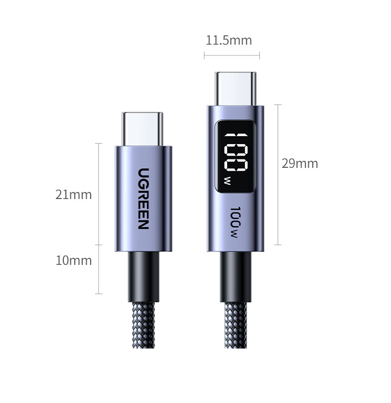 UGREEN绿联 USB-C 数显快充数据线 100W 深空灰 1 m