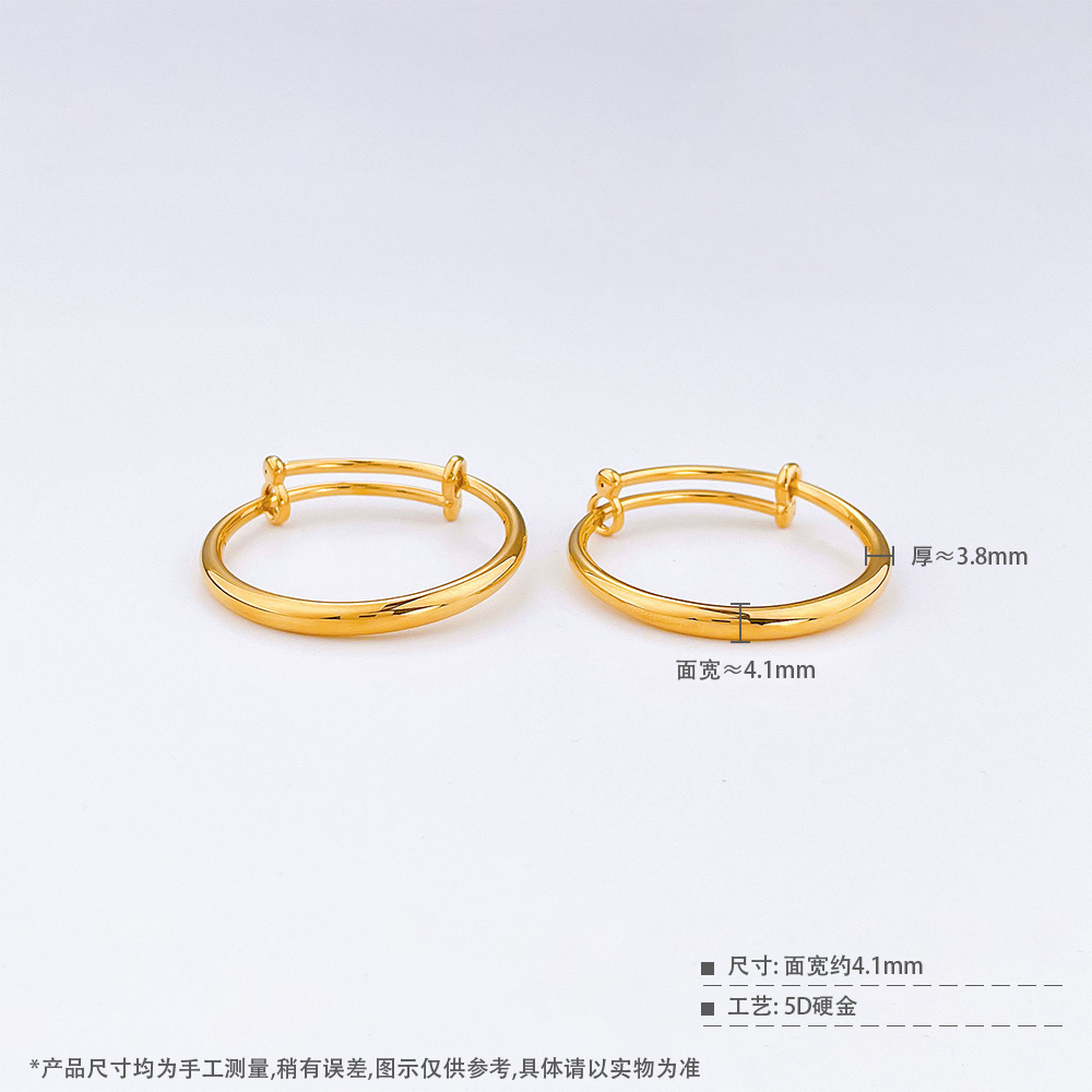【限时克减150元】足金 #儿童/宝宝 【精品】无氰5D硬金空心推拉童镯素圈光圈手镯圆管推拉童镯宝宝镯/对(AR5DTZ00003)(预售产品下单后不退款不退货不换货不补差价)