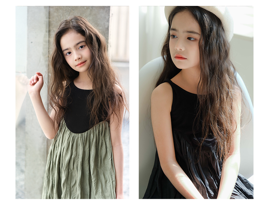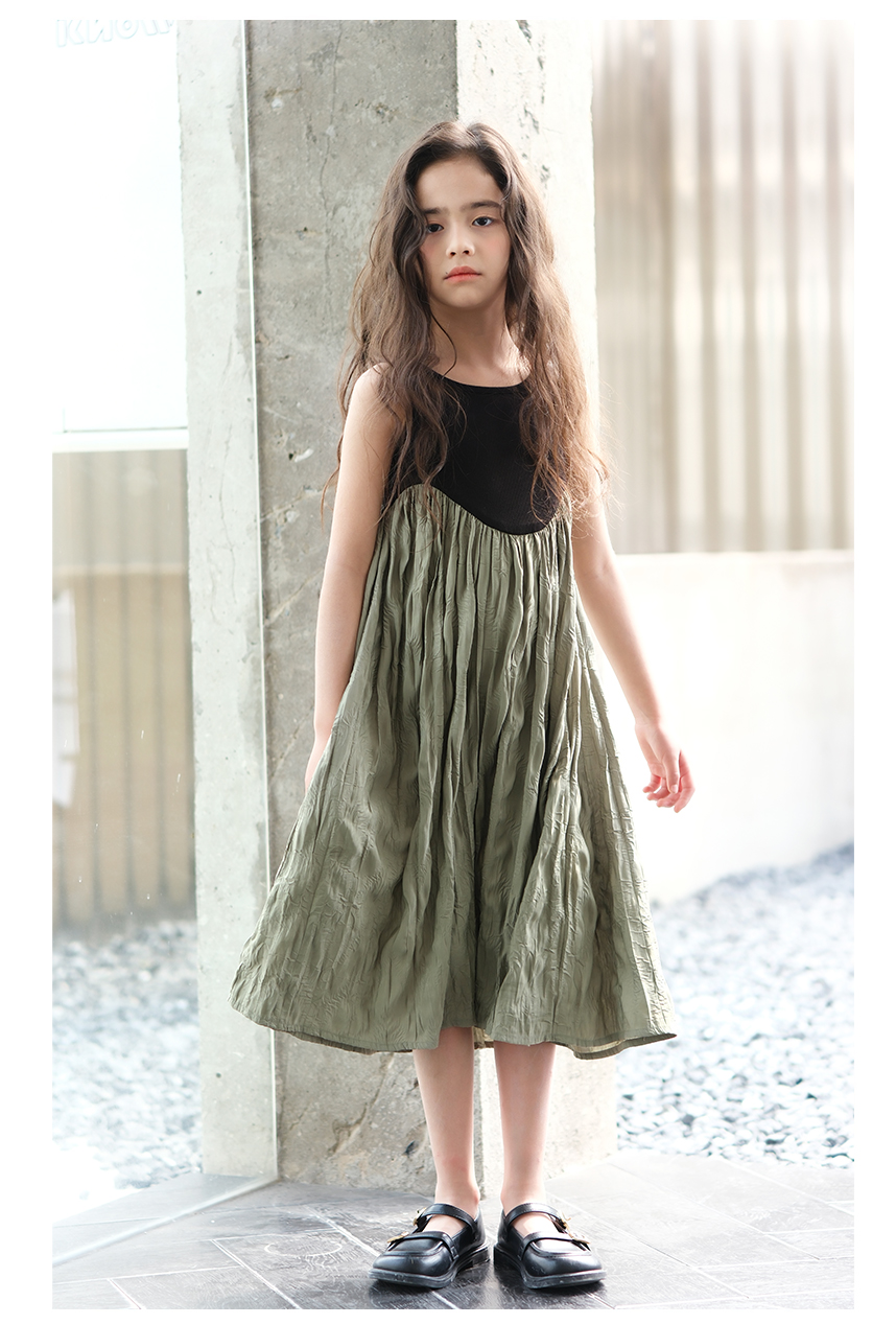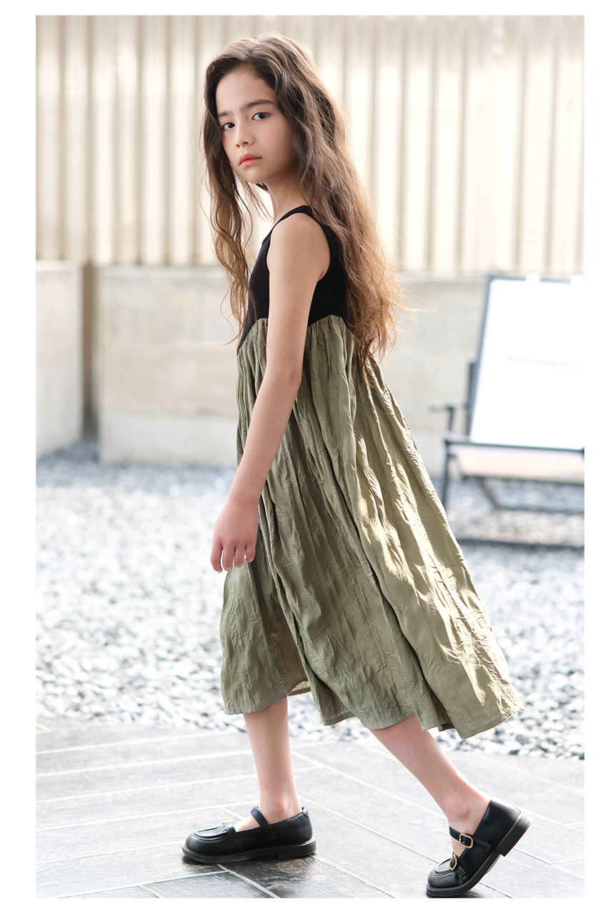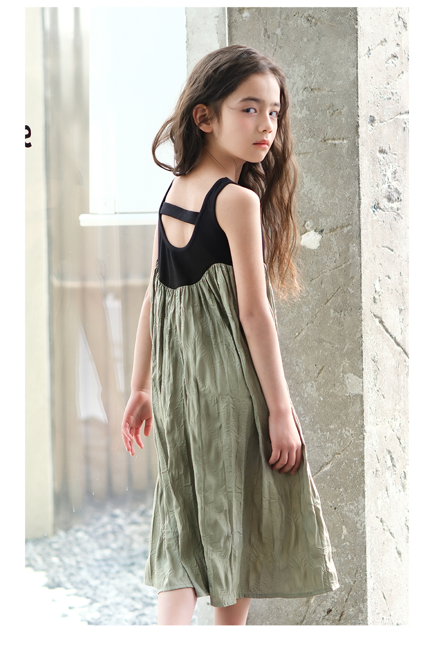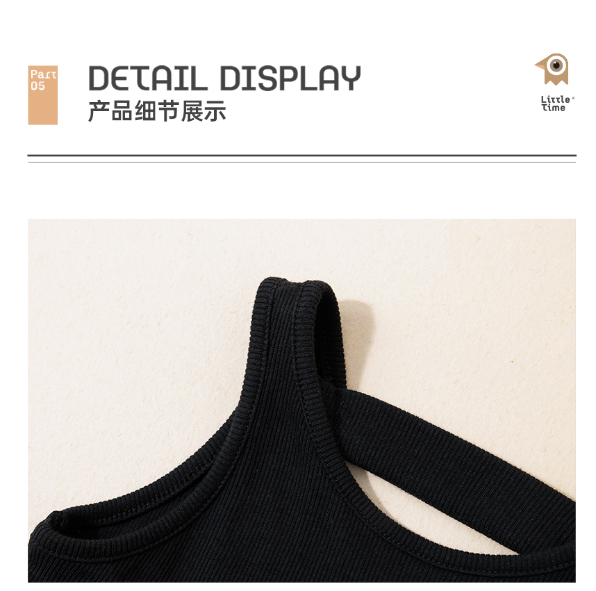 littletime女童黑色连衣裙2024春秋新款复古肌理裙春夏无袖吊带裙