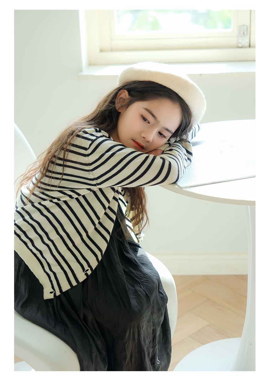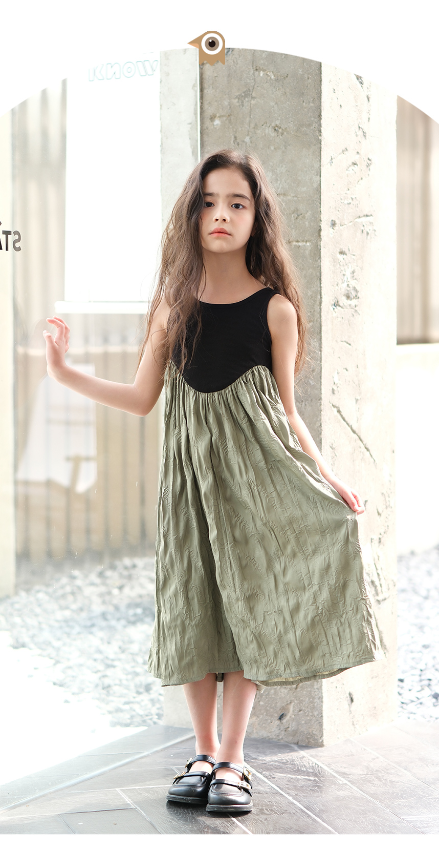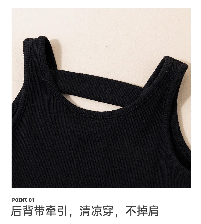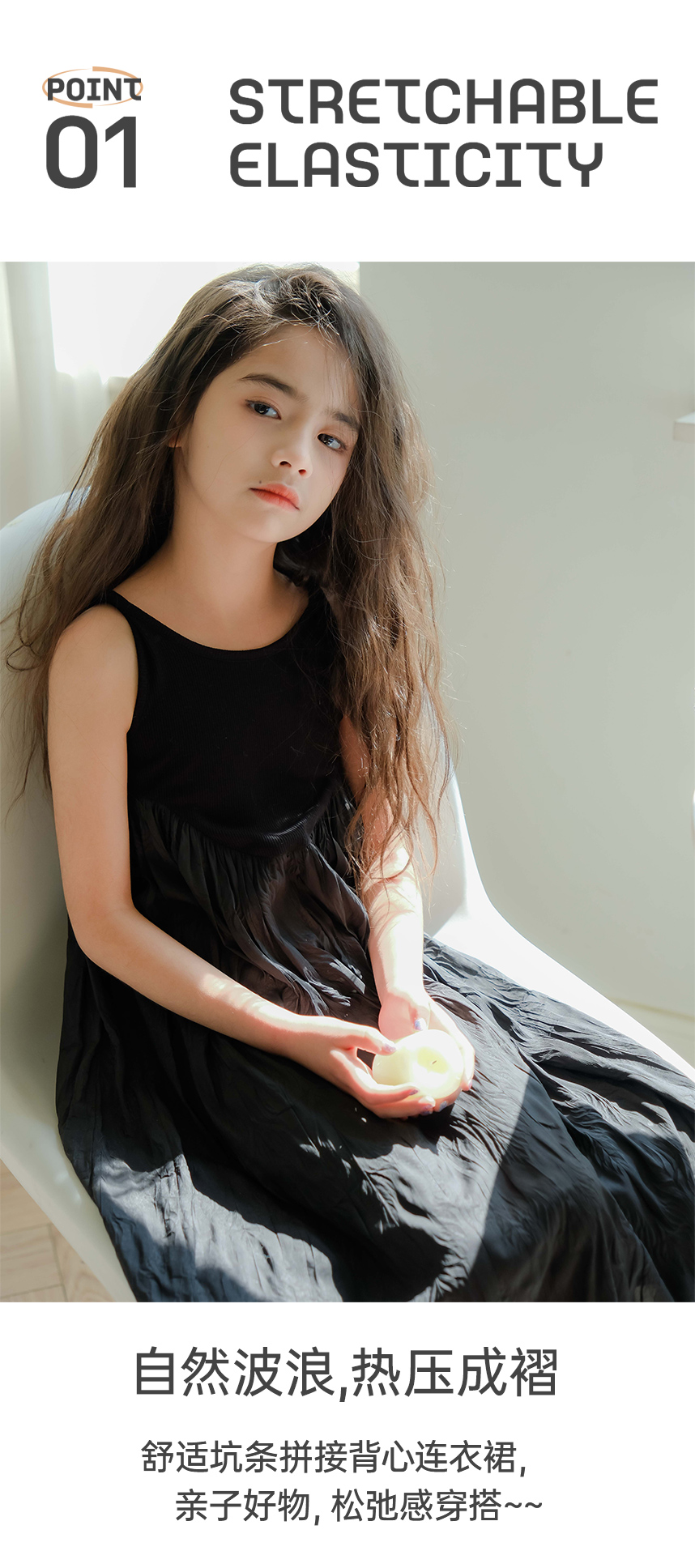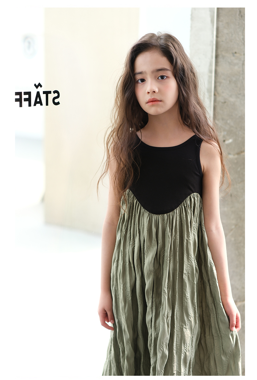 littletime女童黑色连衣裙2024春秋新款复古肌理裙春夏无袖吊带裙