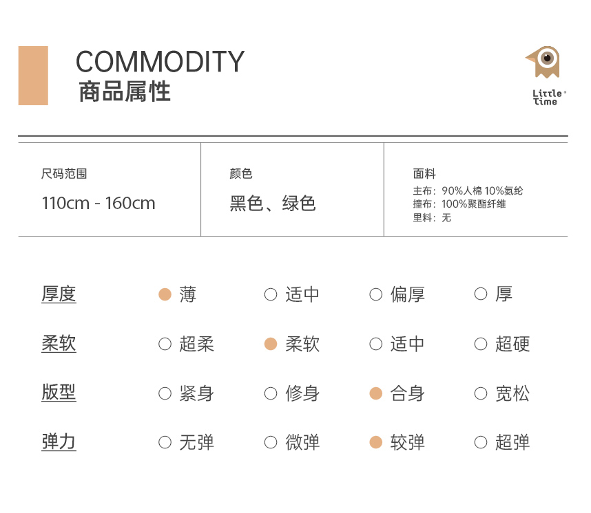 面料:粘胶纤维(粘纤)90% 聚氨酯弹性纤维(氨纶)10%