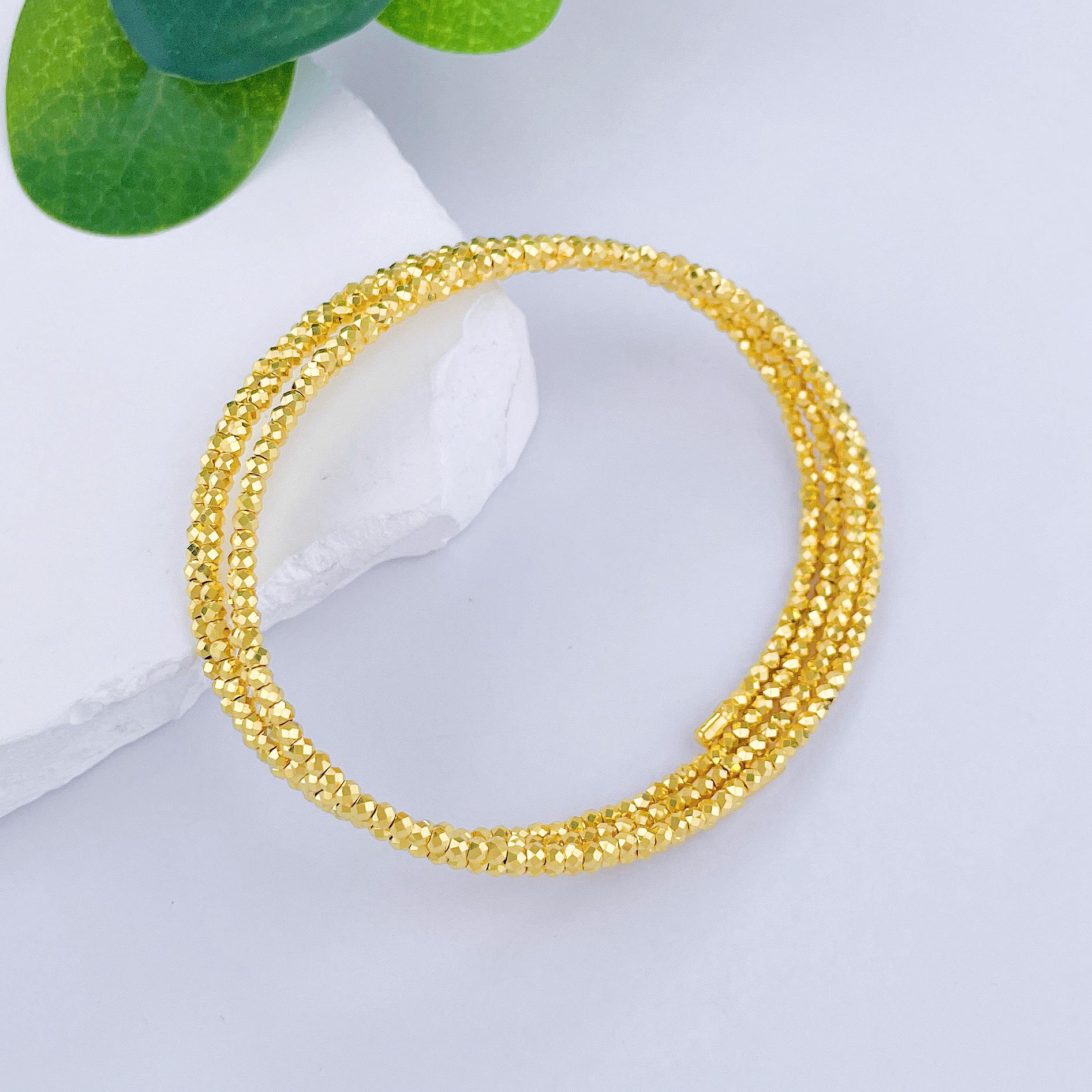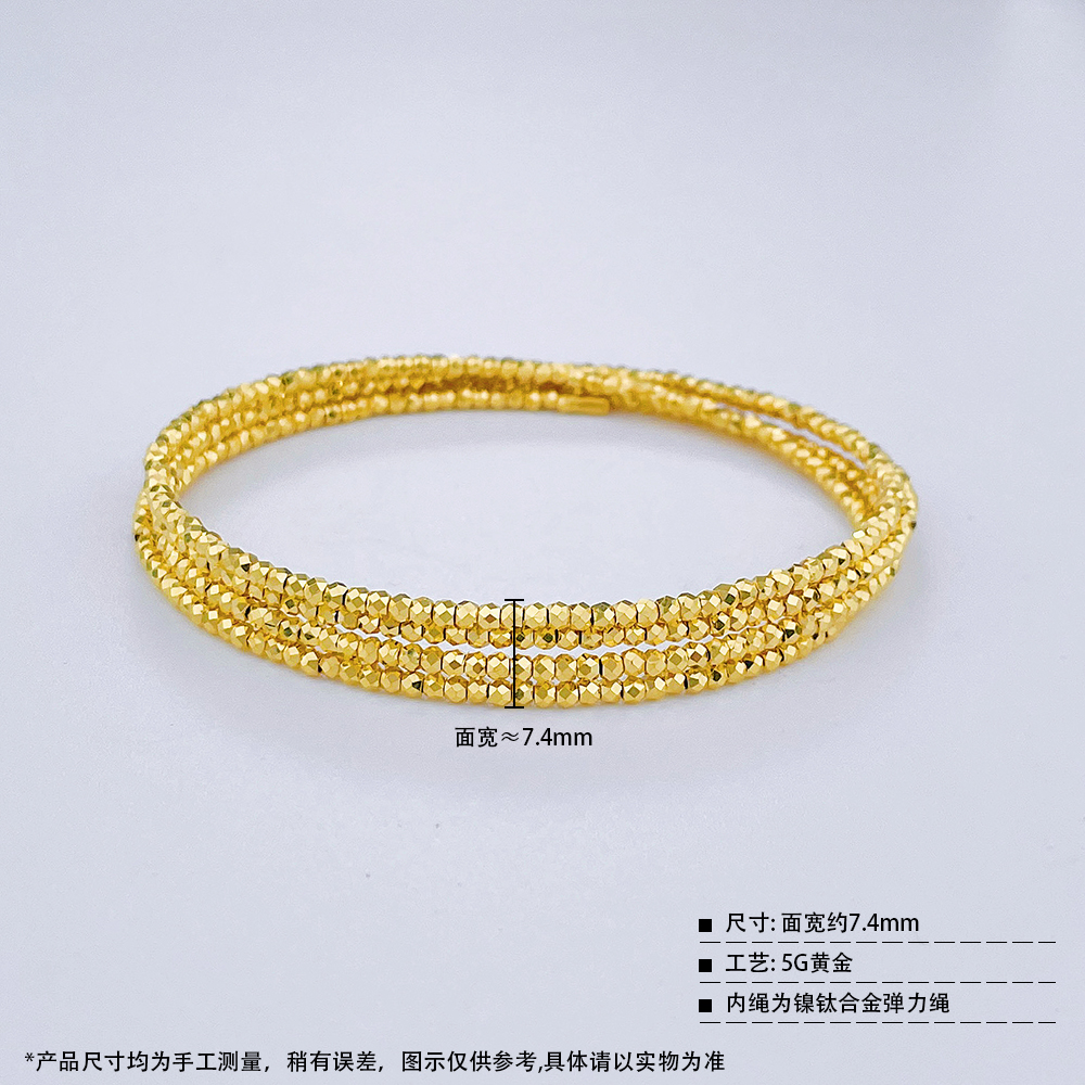 【限时克减150元】足金 椭圆形5G超轻黄金四圈蹦迪珠弹力镯(总面宽约7.2-7.6mm)空心开口蹦迪珠手镯弹力手镯(AG5GSZ00004)(预售产品下单后不退款不退货不换货不补差价)