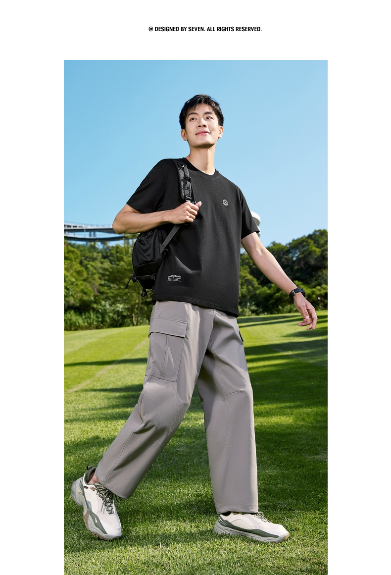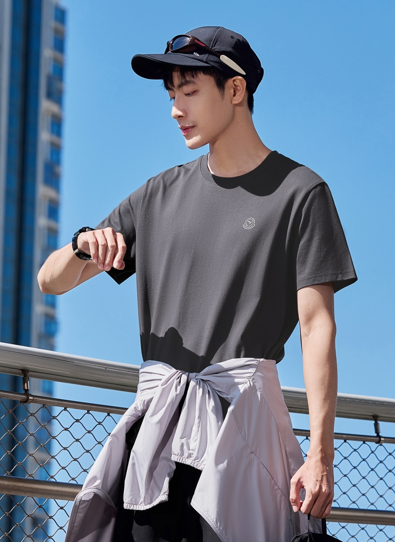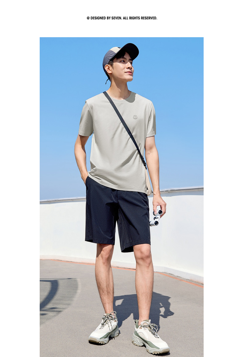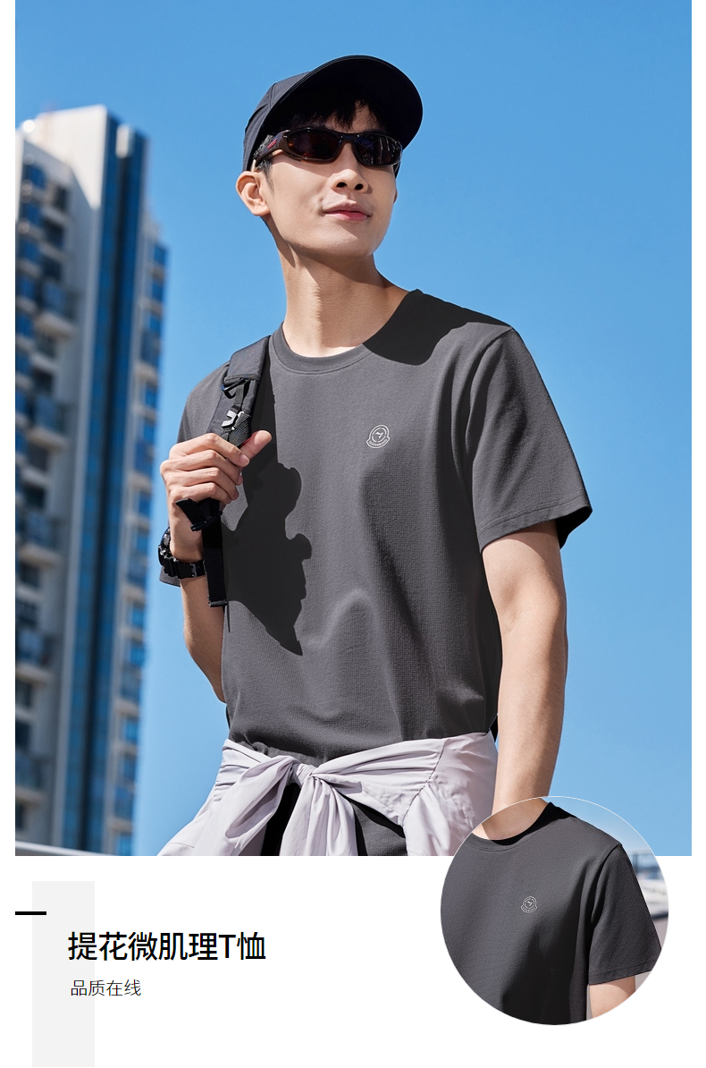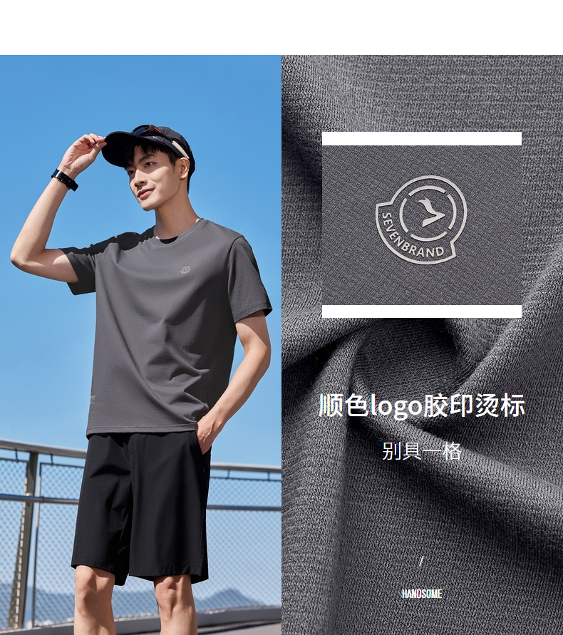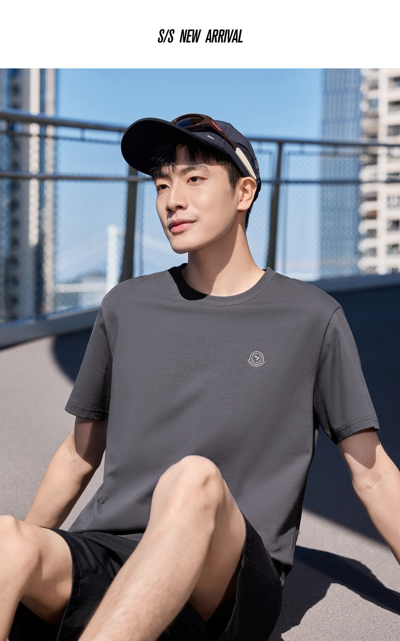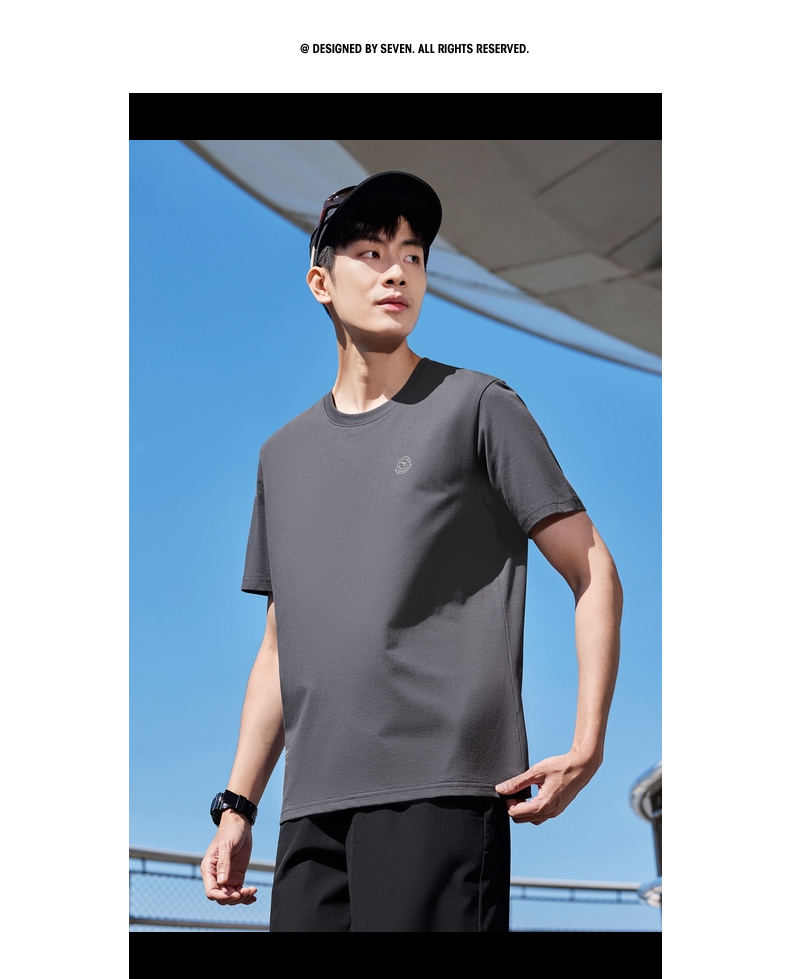 【户外】柒牌圆领短袖T恤男士夏季新品休闲百搭薄款宽松套头上衣128T72150