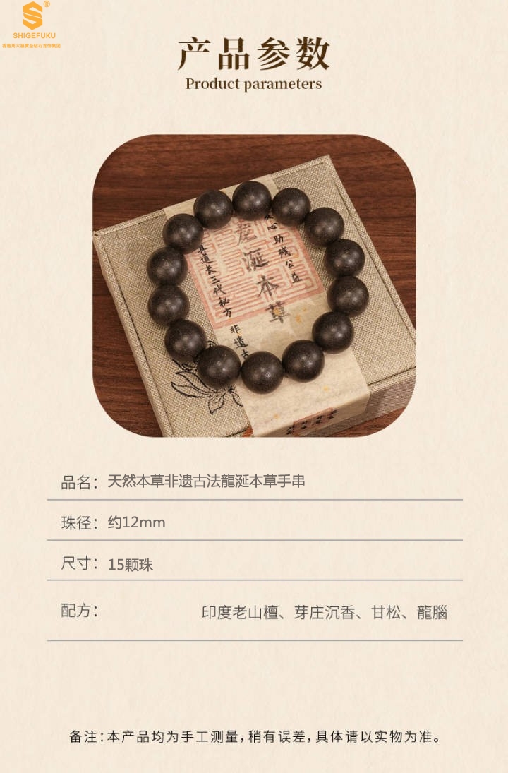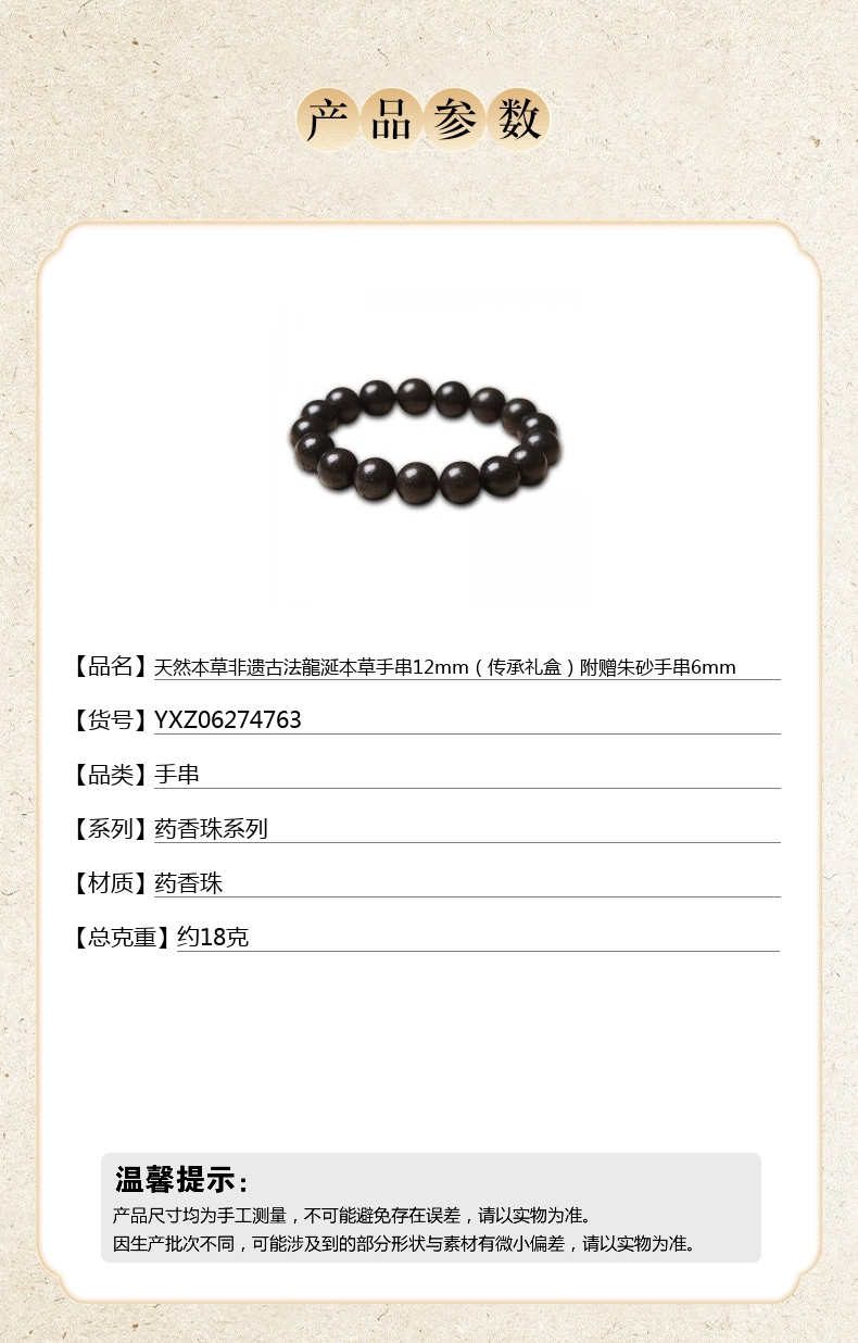 【品名】天然本草非遗古法龍涎本草手串12mm(传承礼盒)附赠朱砂手串6mm