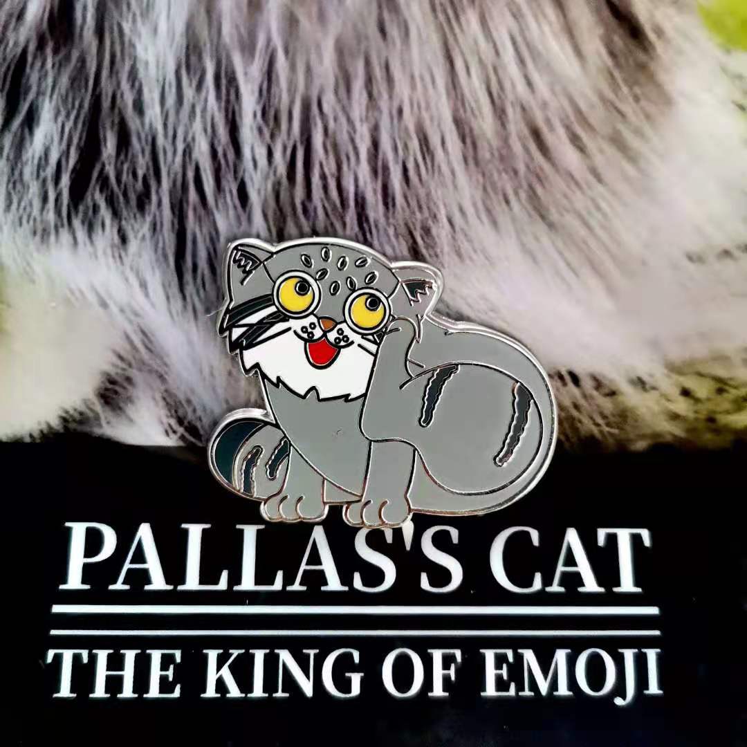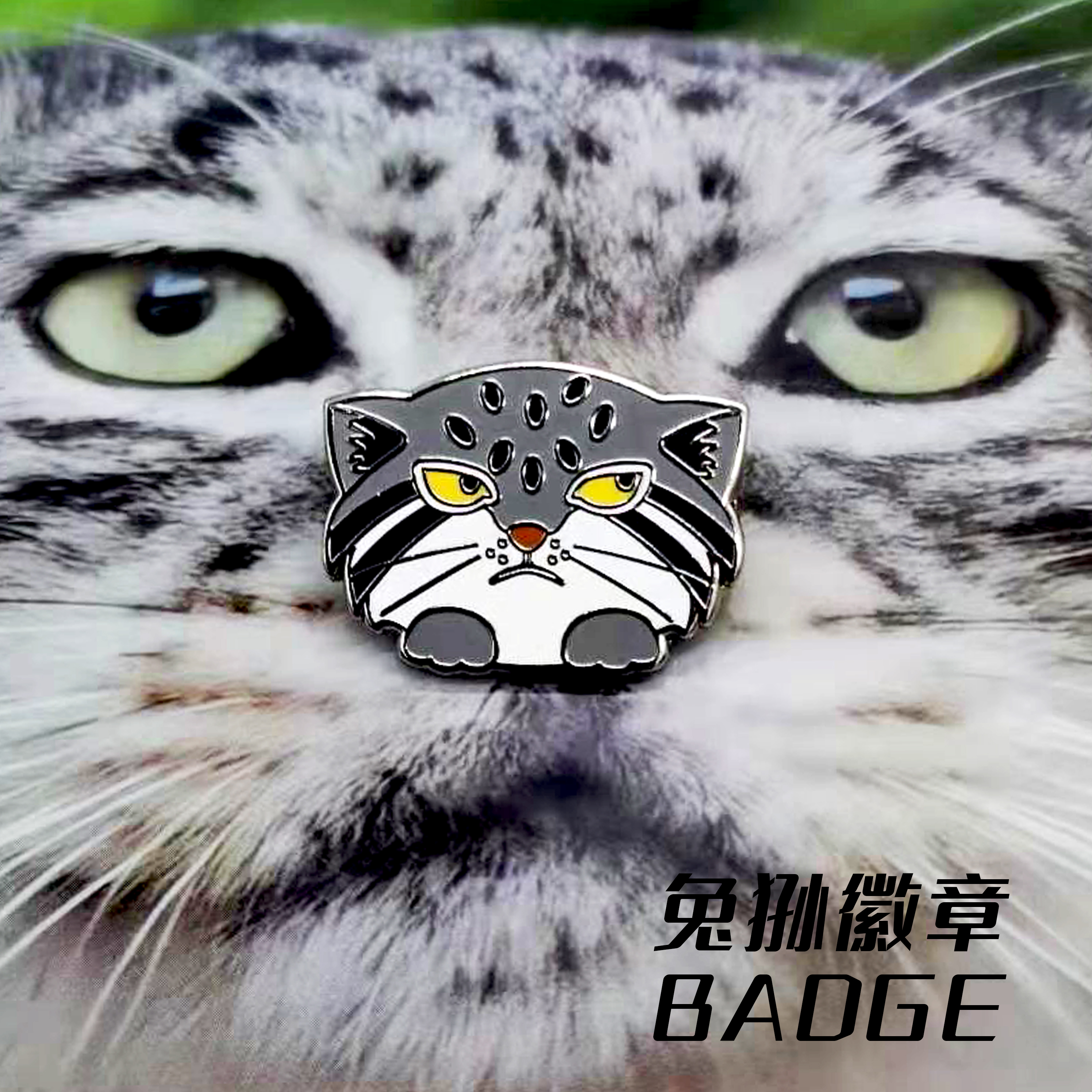 兔狲卡通金属仿珐琅银色徽章胸针3cm