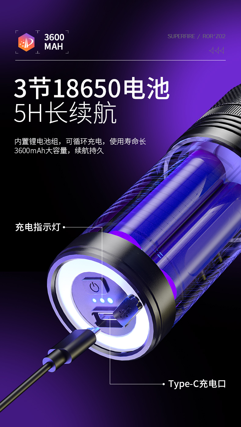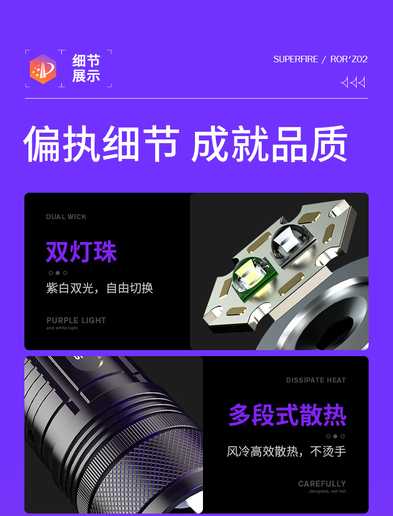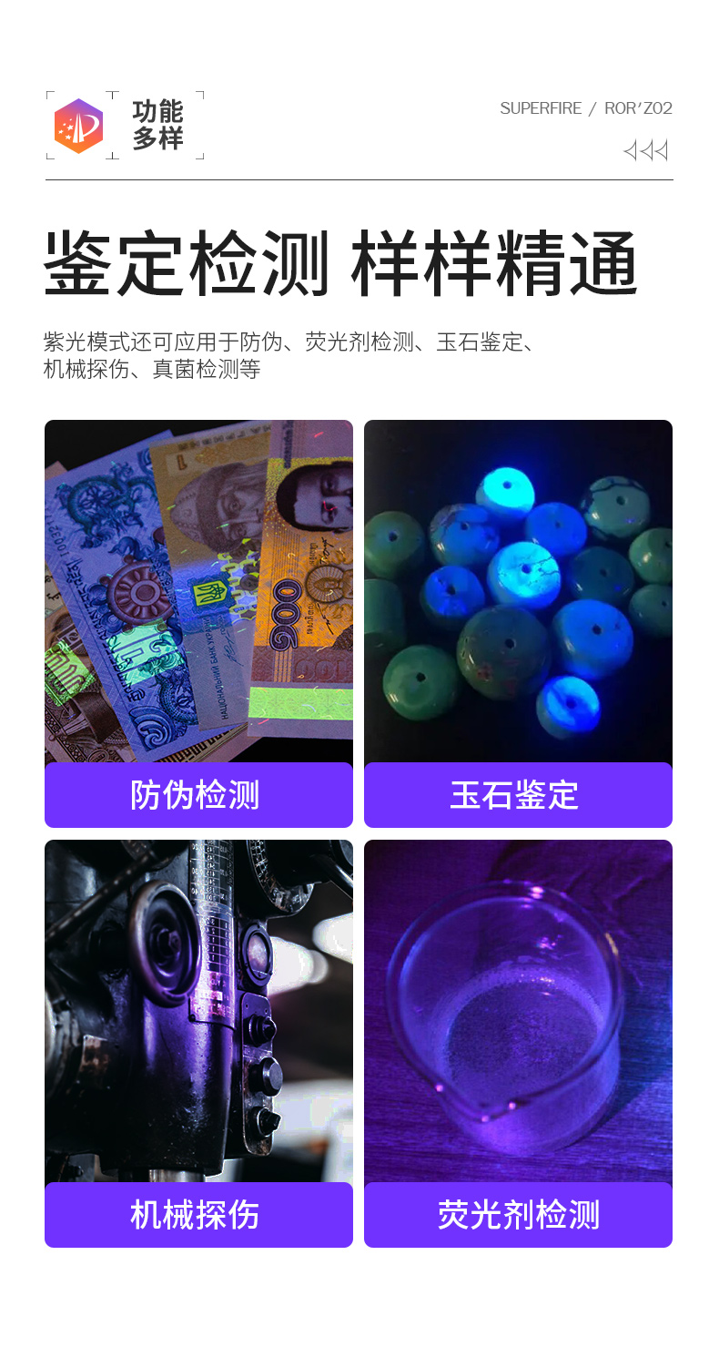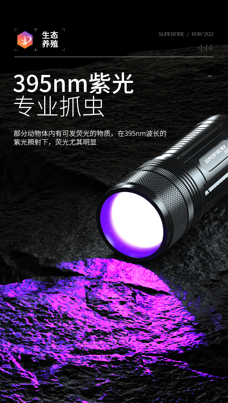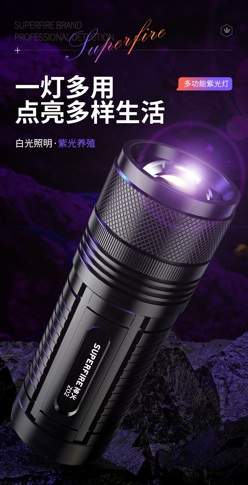 SUPERFIRE神火Z02紫光手电筒鉴定荧光剂紫外线蝎子灯强光手电