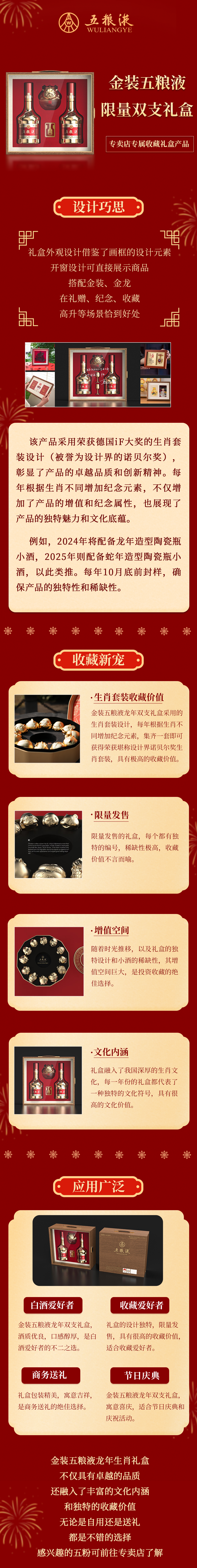 52度金装五粮液(双支装)500mlx2+100ml 礼盒装