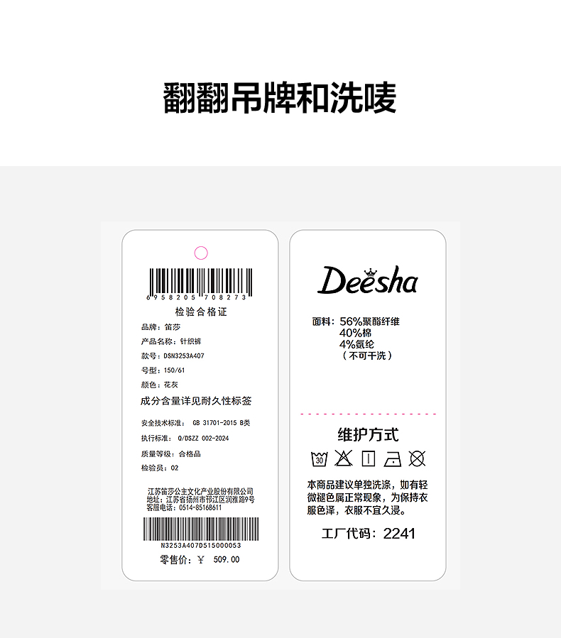 笛莎Deesha青少年女童裤子2025秋季女童时尚休闲萝卜卫裤