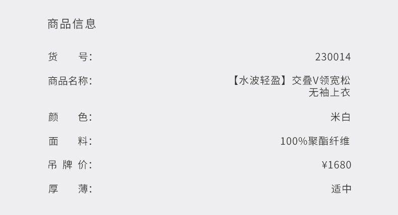 【水波轻盈】交叠V领宽松无袖上衣/230014