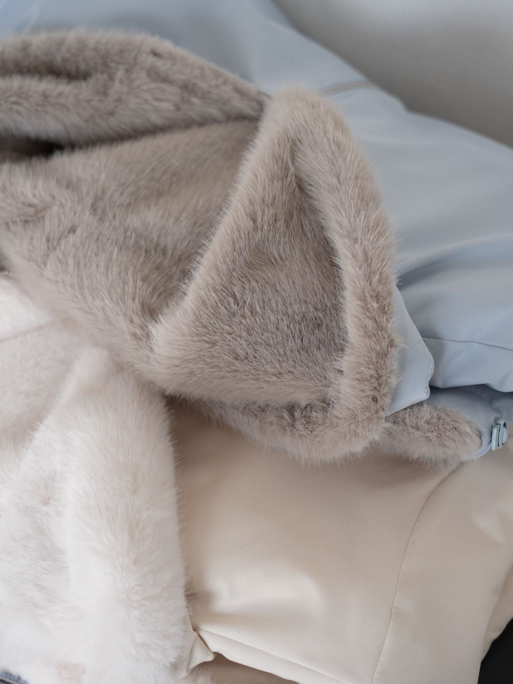 🌸【外贸尾单】仿貂绒一体连帽外套 :💕一件过冬闭眼冲❄️毛毛外套一件抵俩❗️ 内里高品质厚绒暖糯亲肤➕外层三防耐脏抗造🔥奶油白/雾霾蓝双色不挑人穿❗️