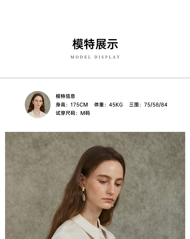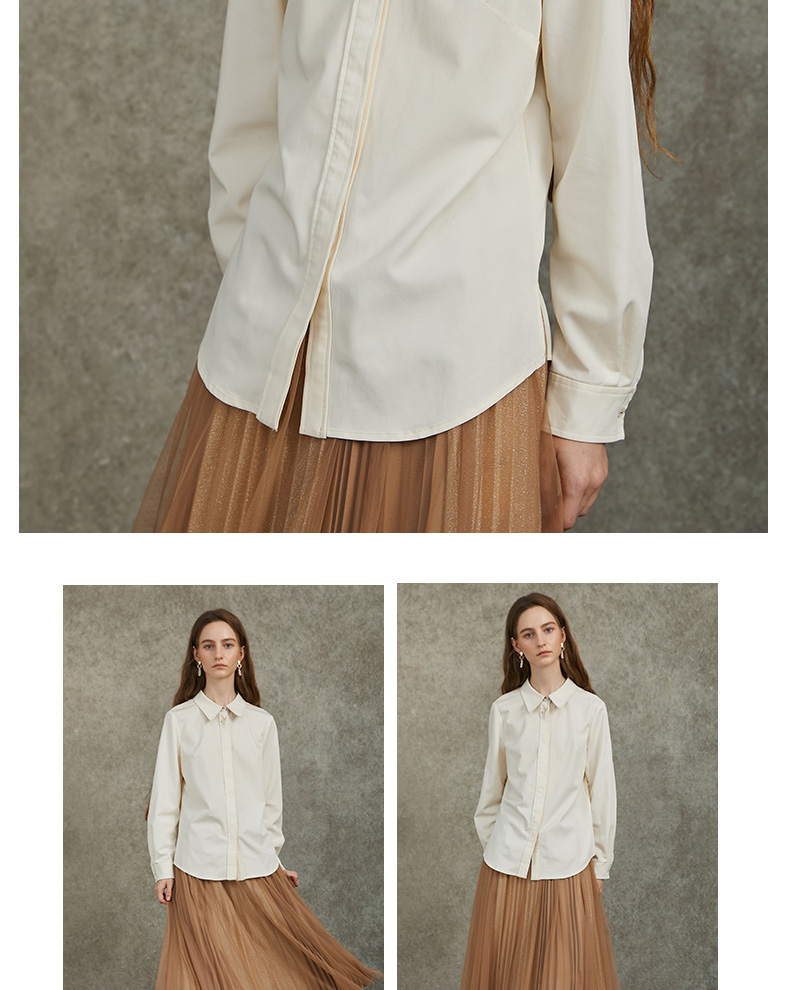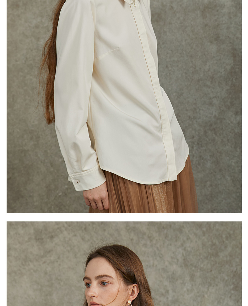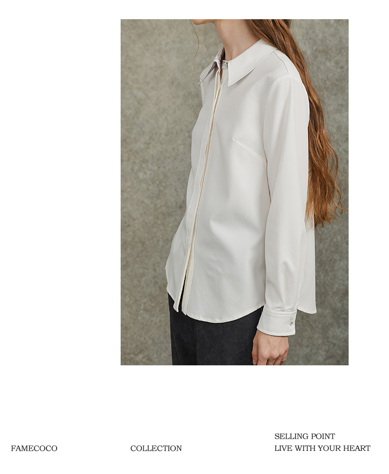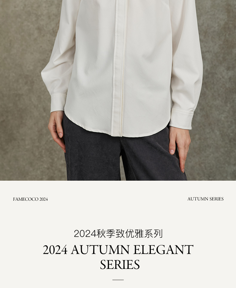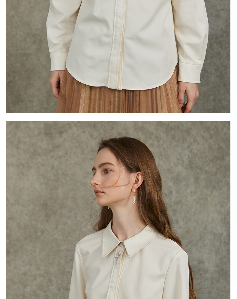 Famecoco范可儿正肩长袖衬衣气质通勤领口植物刺绣FAC6BH010