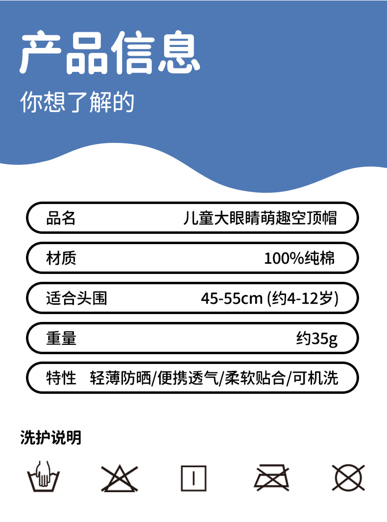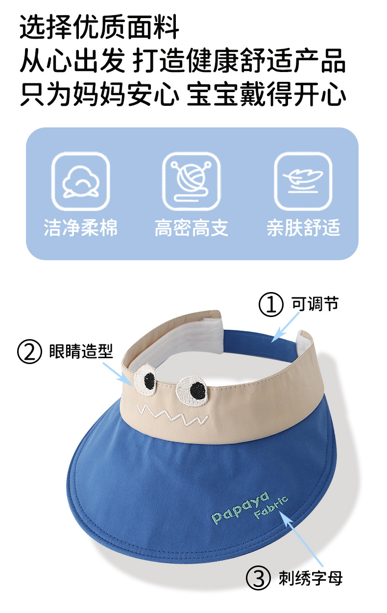 【轻盈透气❗️便携防晒】轻盈宝宝帽子春夏款空顶帽可爱卡通大檐遮阳帽男女童户外薄款防晒。ya