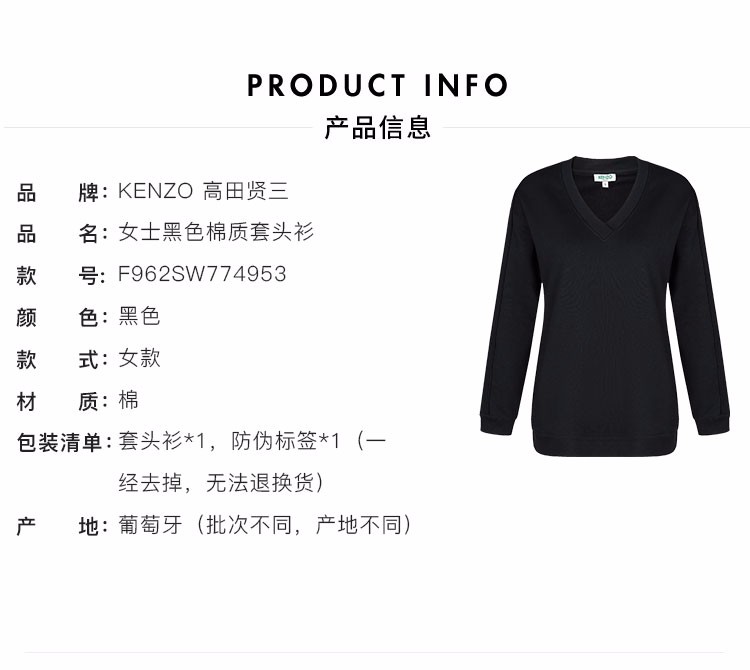 KENZO 高田贤三 女士logo徽标长袖卫衣F962SW774953