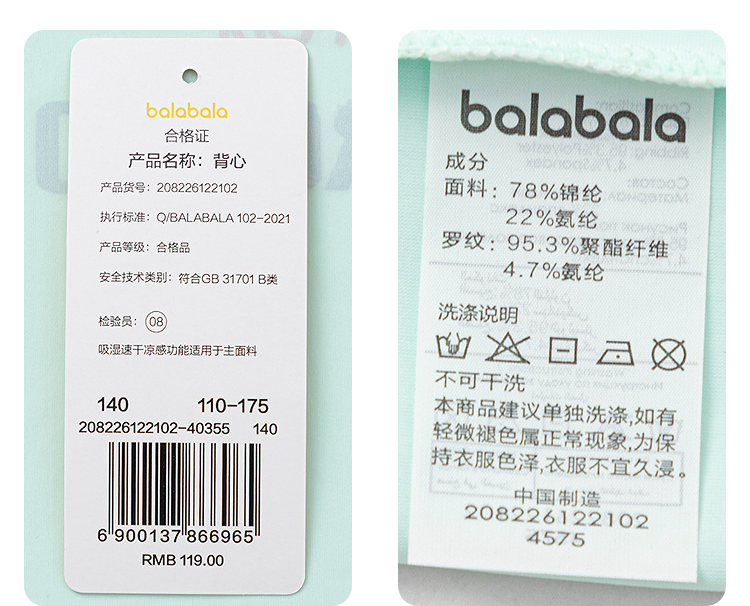 【balaOne】巴拉巴拉男童背心儿童中大童无袖t恤2026新款夏装速干