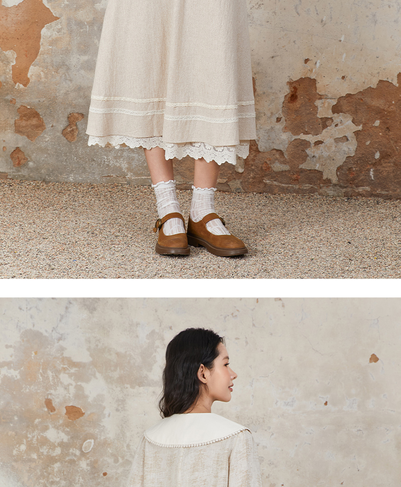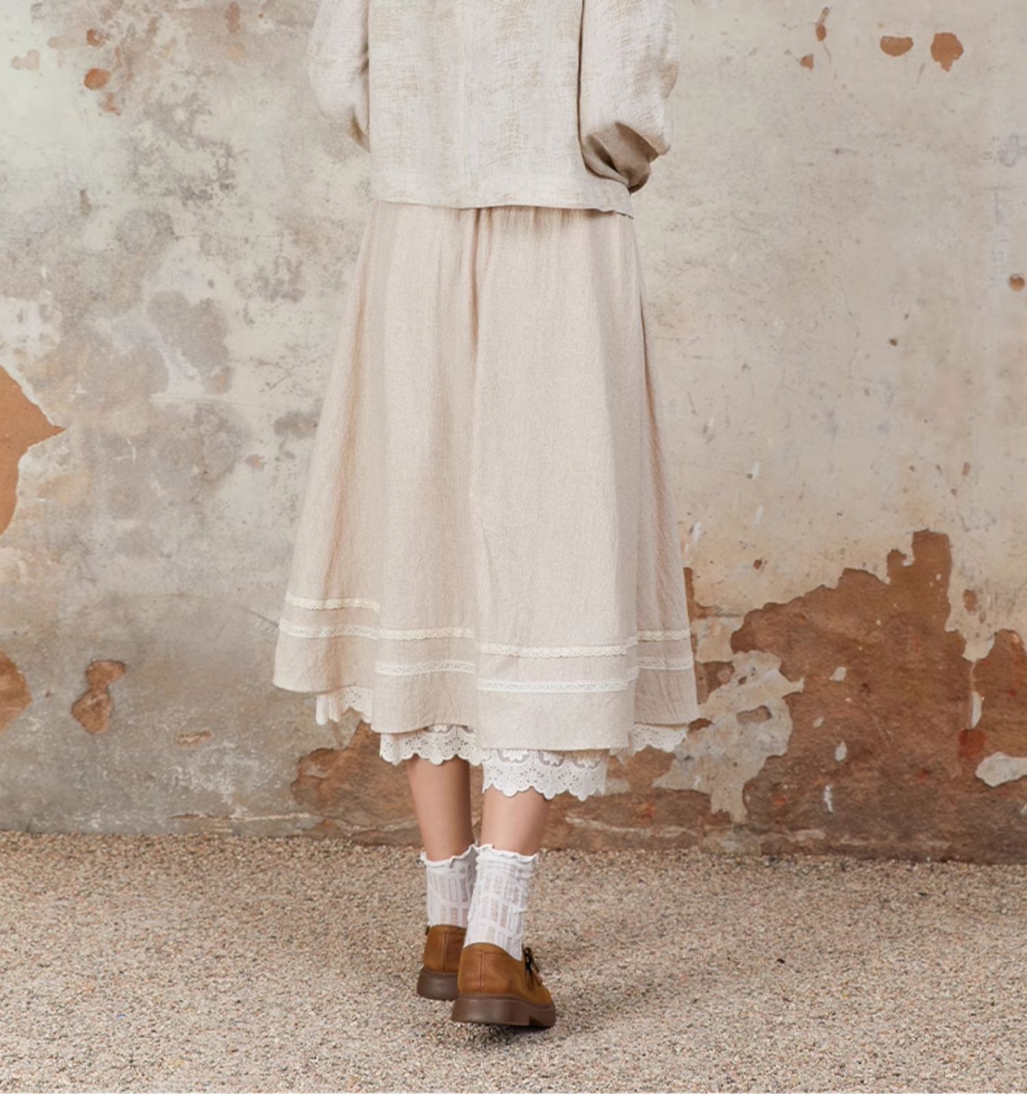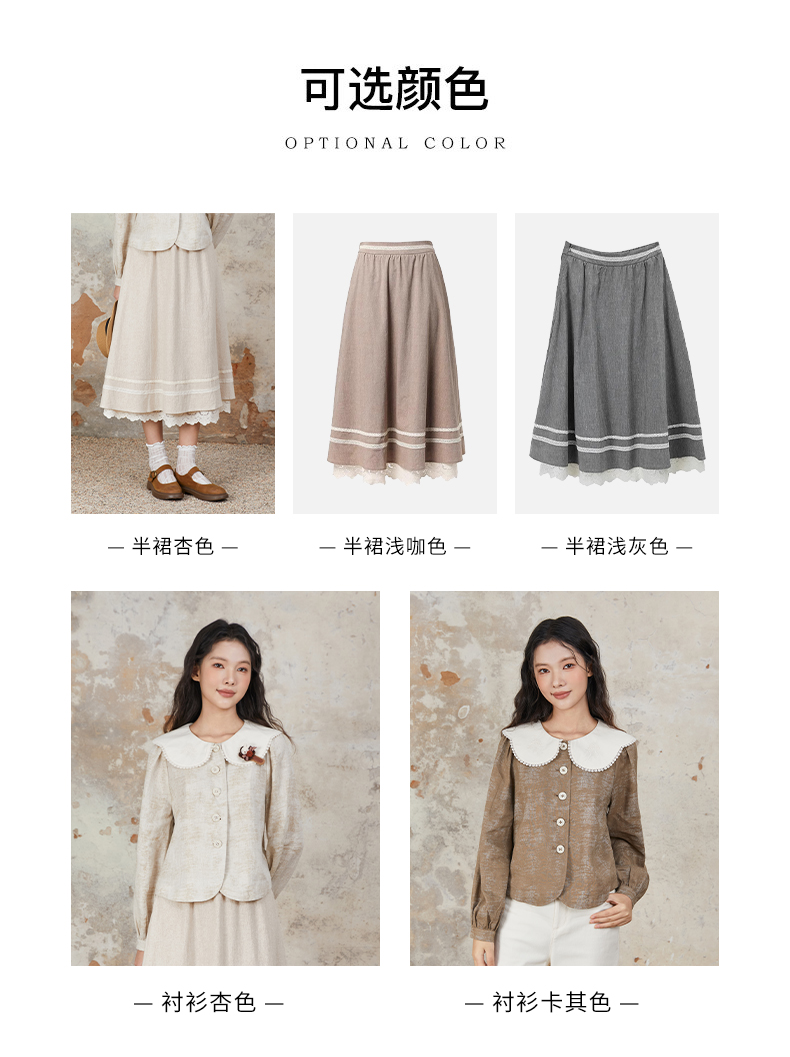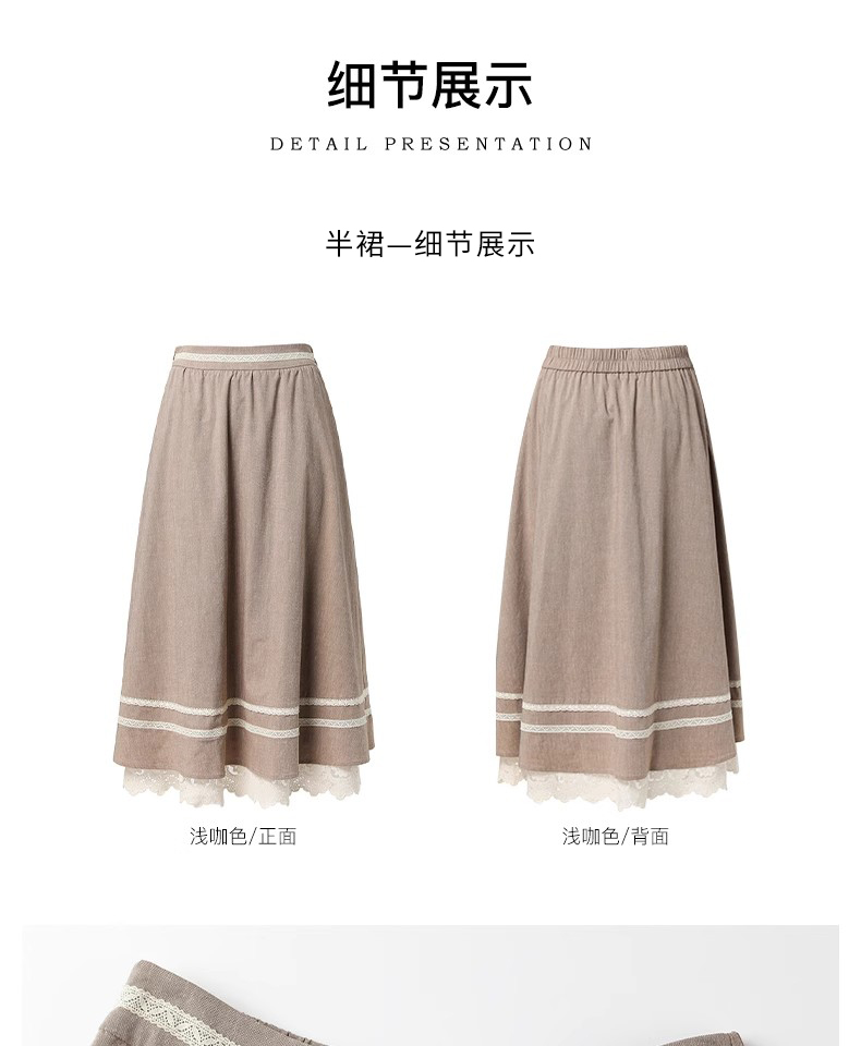 Famecoco原创文艺范蕾丝拼接花边半身裙/衬衣春款FAB6HA021