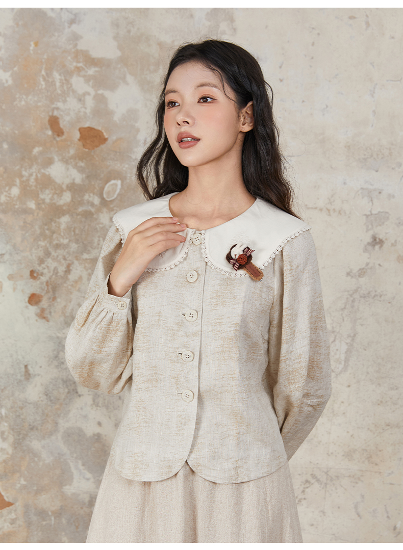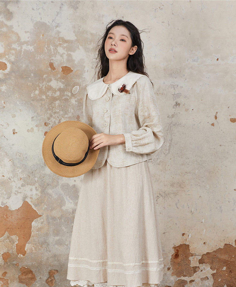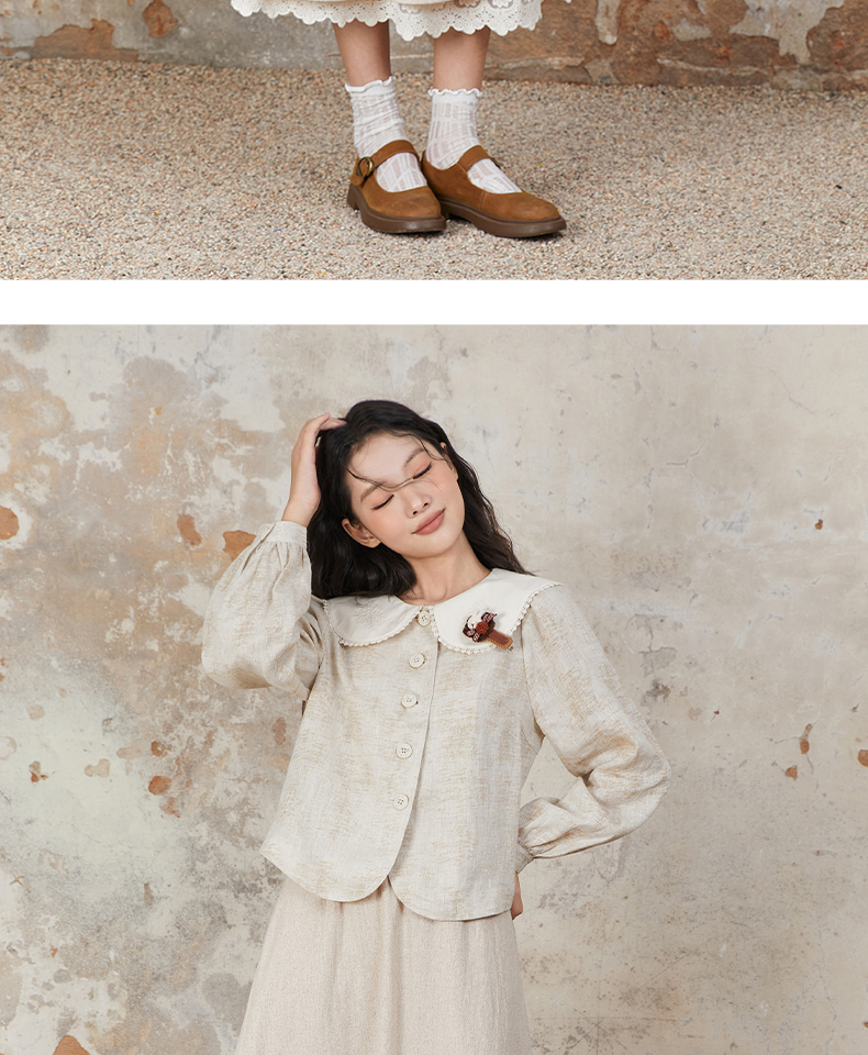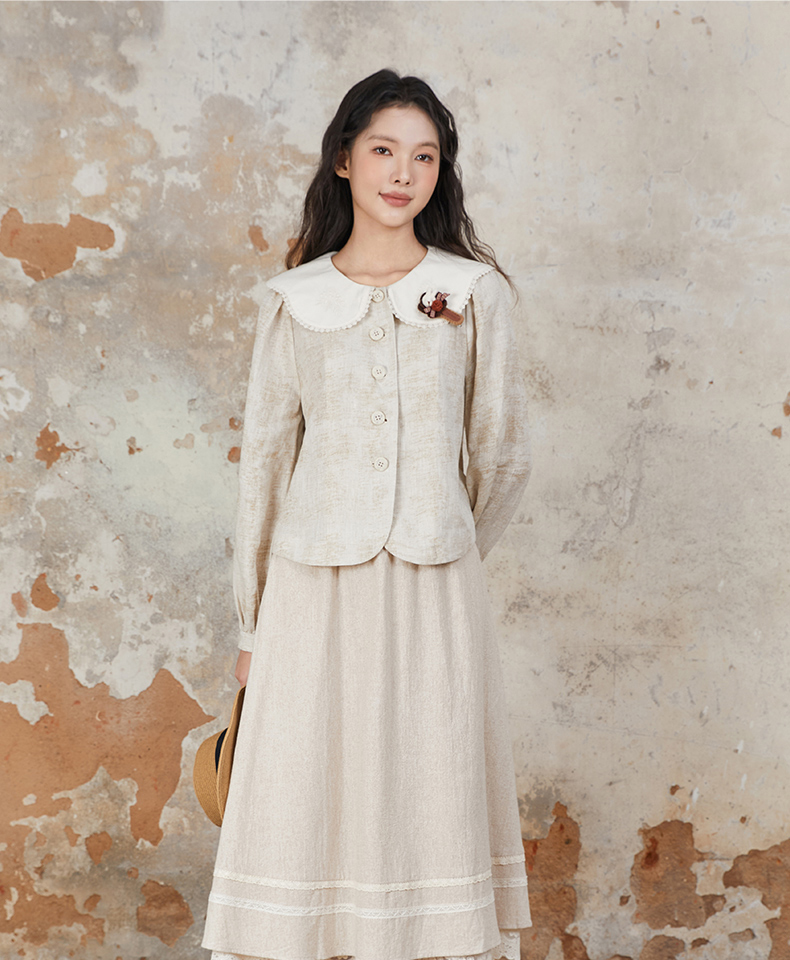 Famecoco原创文艺范蕾丝拼接花边半身裙/衬衣春款FAB6HA021