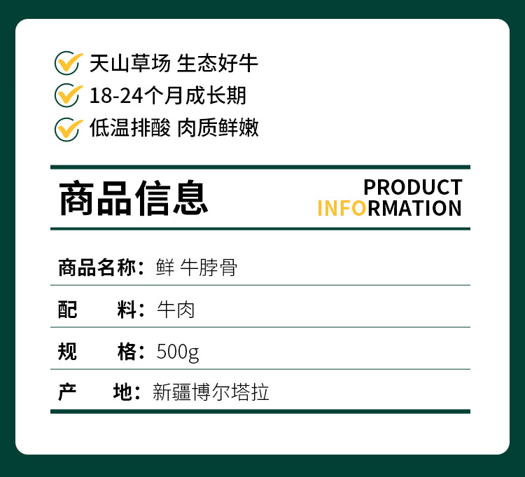 冷鲜 看得见的放心 天莱香牛 牛脖骨 500g/份