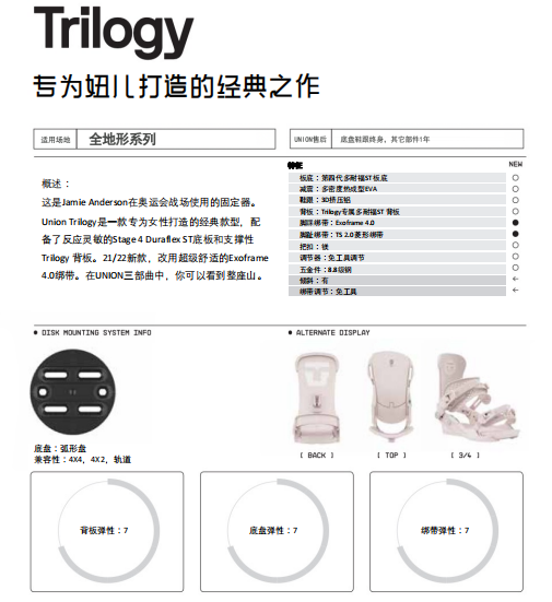Union 21-22 新款Trilogy (Team Hb) 女款固定器 粉色