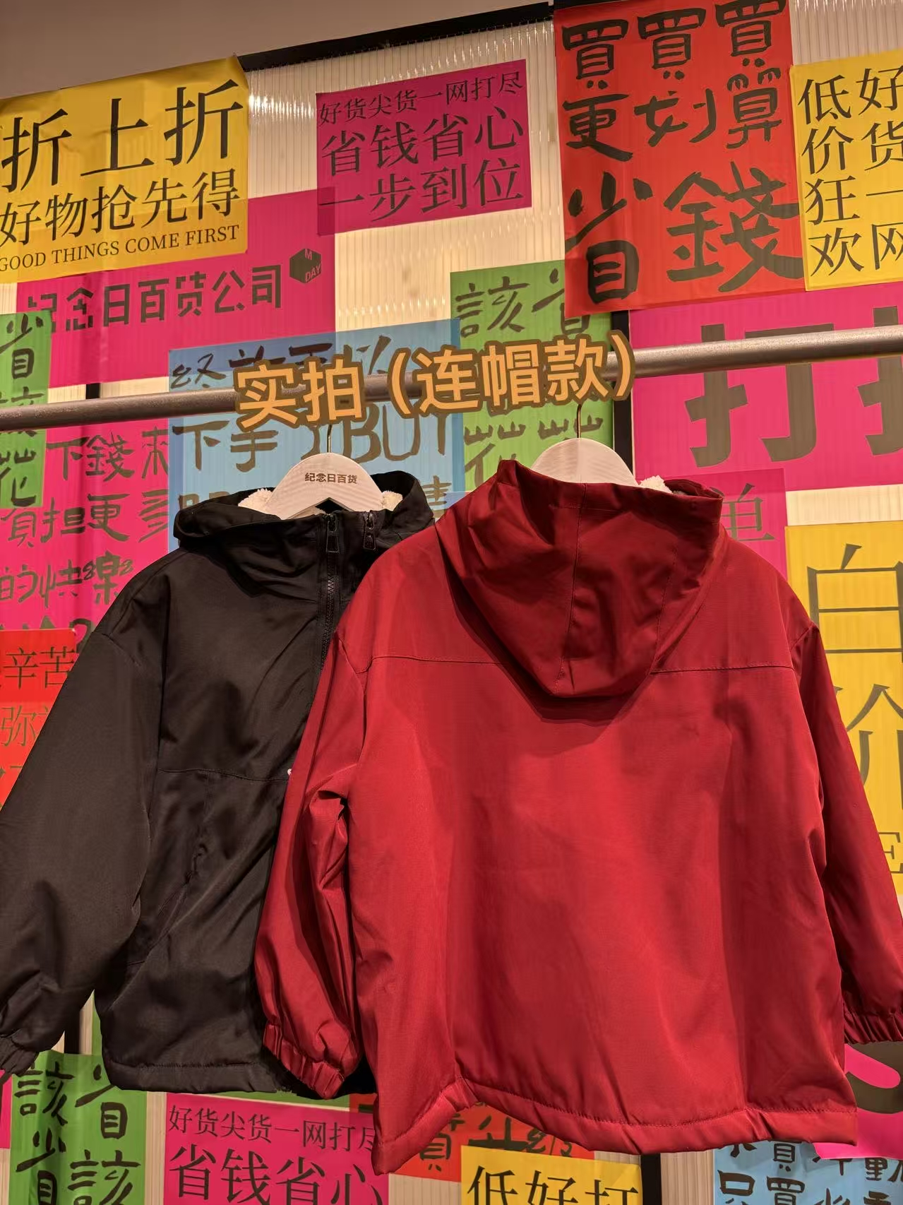 【YW】无忧购(拍大一码)儿童外套男女童加绒加厚连帽夹克双拉链冲锋衣(截单后3-5天发货)