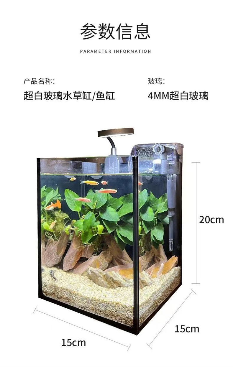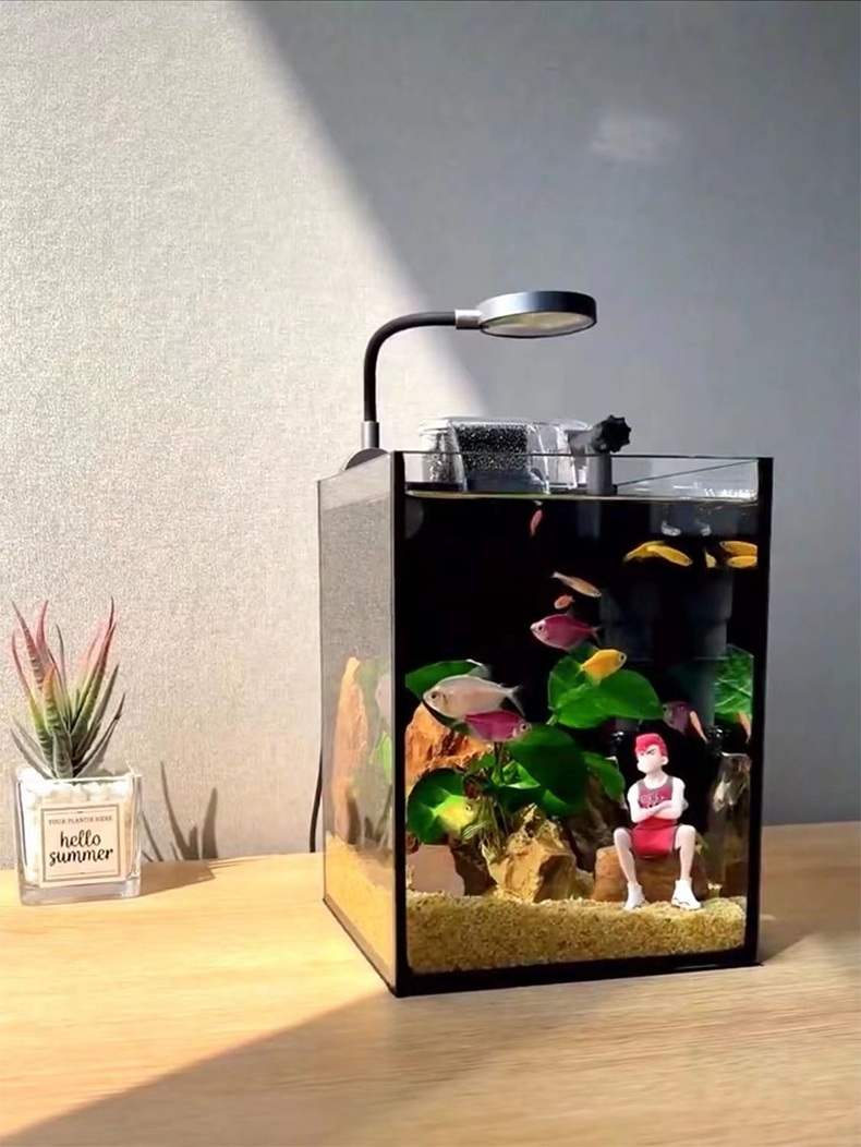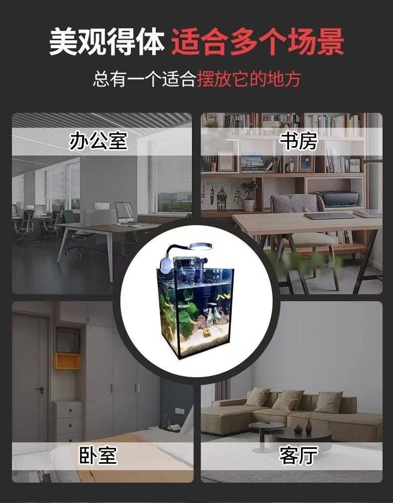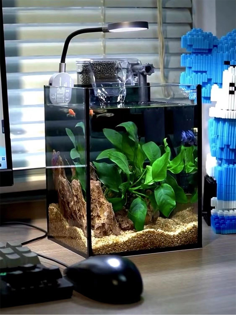 超白玻璃鱼缸造景加厚玻璃斗鱼缸办公桌书桌桌面小型客厅循环