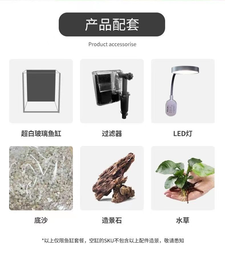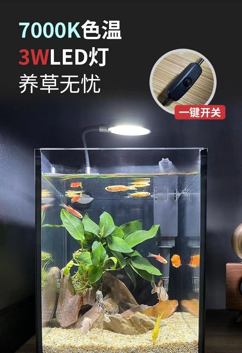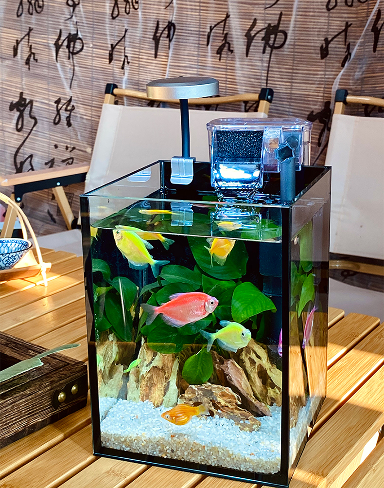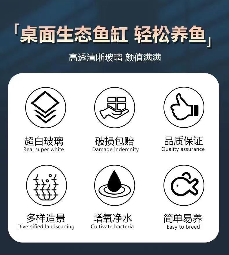 超白玻璃鱼缸造景加厚玻璃斗鱼缸办公桌书桌桌面小型客厅循环