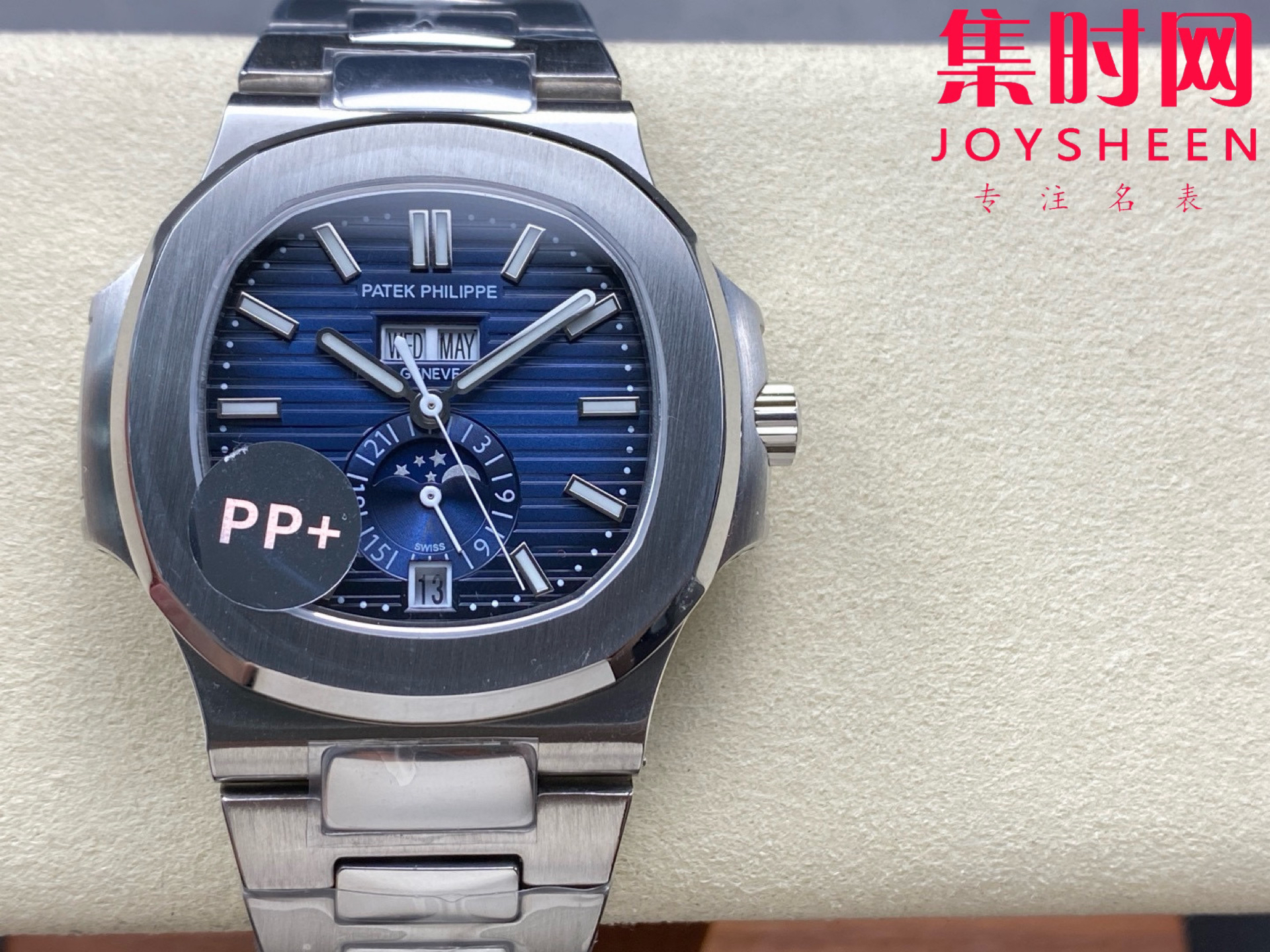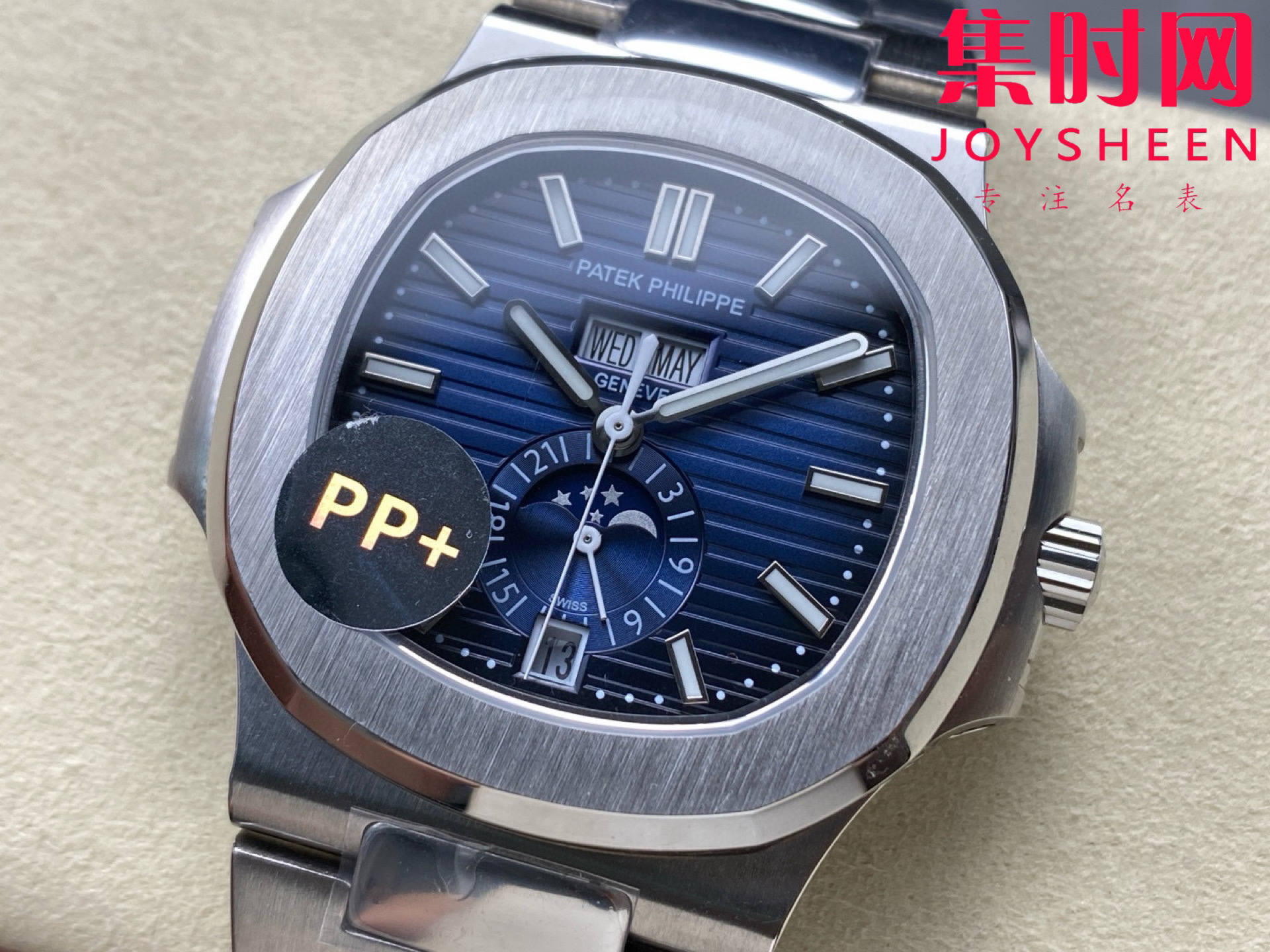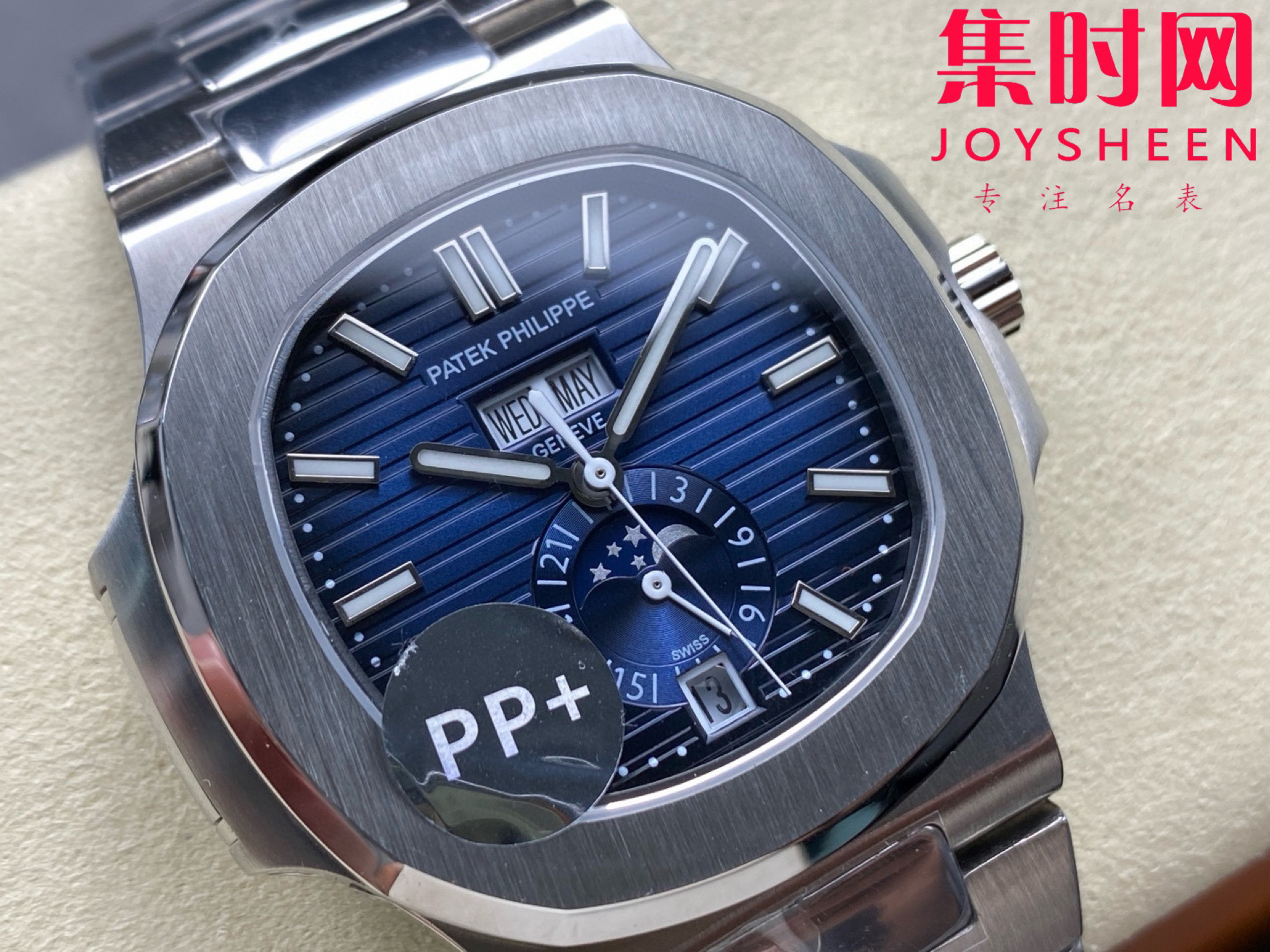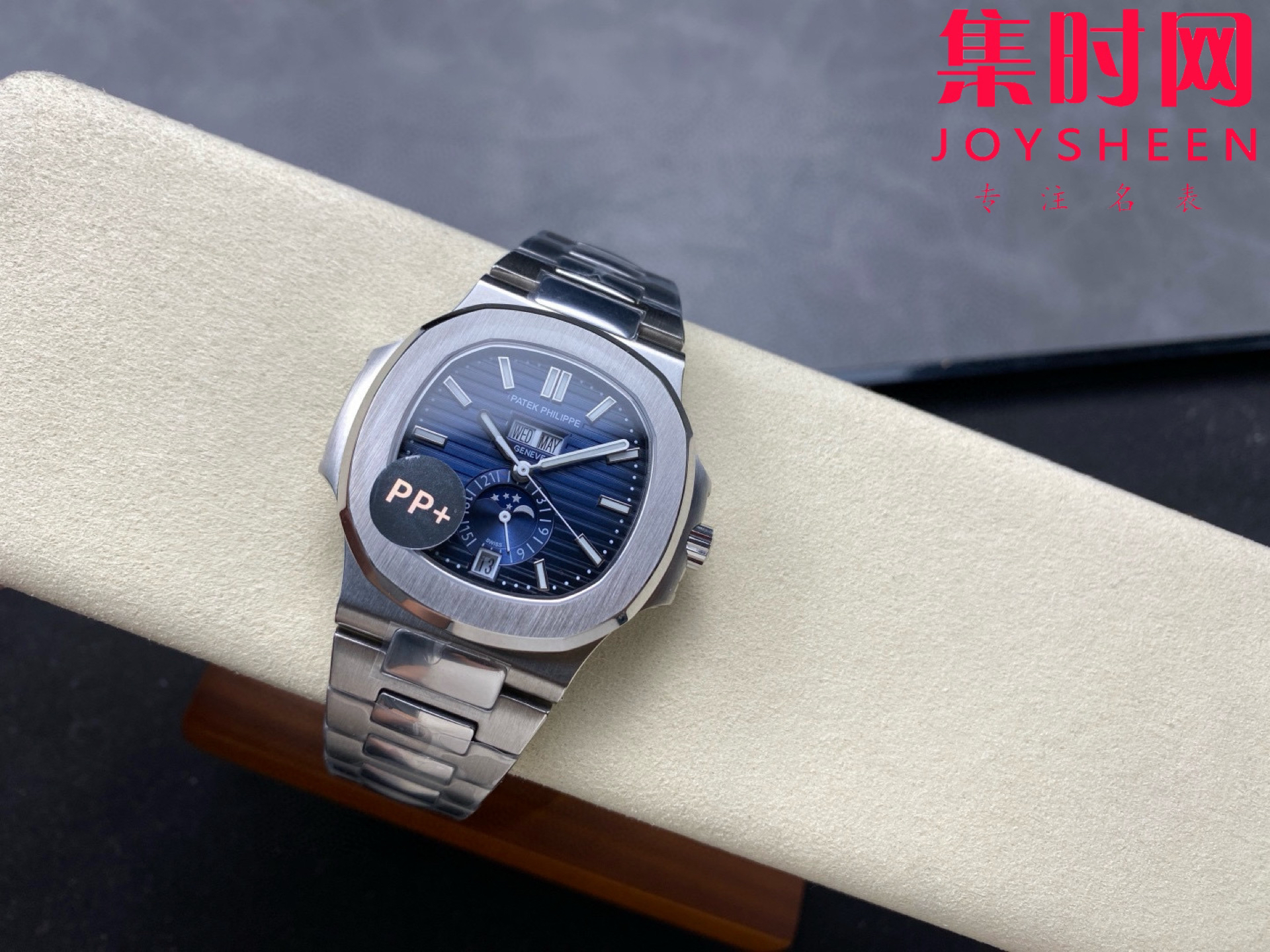 PP+百达翡丽 鹦鹉螺系列5726 男士腕表 Nautilus系列万年历腕表 鹦鹉螺全系列一贯设计的旋窗造型表壳,正品工艺一致的采用锻纹修饰和抛光工艺处理构成鲜明对比,还原了正品每个细节。盘面深邃并装饰有水平横纹浮雕图案颜色从中央向四周扩散,星期月份双视窗和日期窗黑字白底辨识度高,24小时显示盘附带月相十分高雅,整体给人的感觉是独特又优雅,是zui美的鹦鹉螺之一。