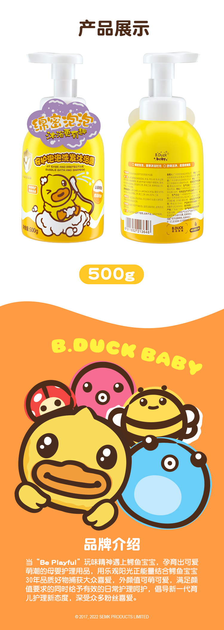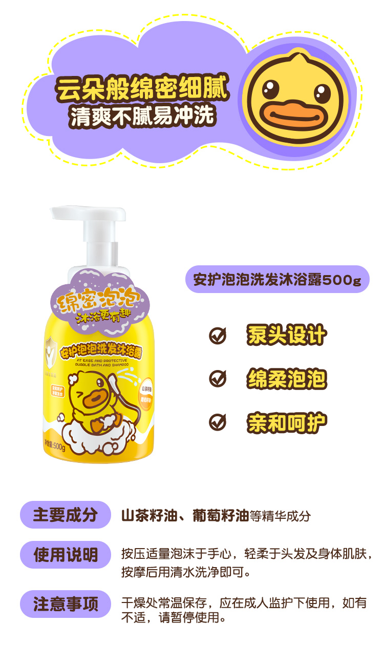 B.Duck Baby小黄鸭安护泡泡洗发沐浴露500g