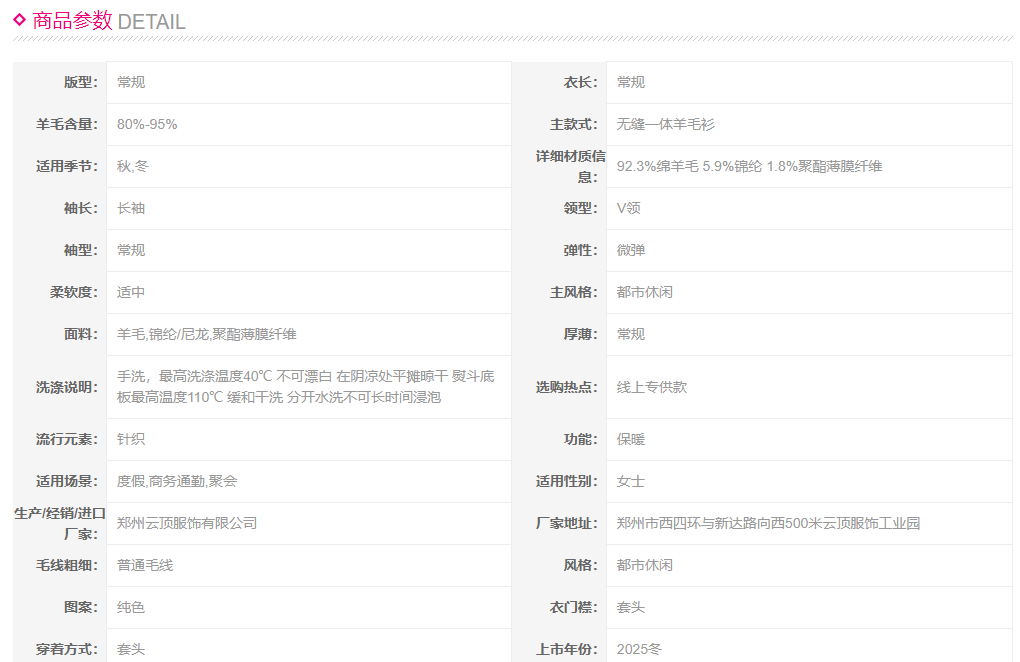 【无缝一体-V领羊毛衫】逸阳秋冬亲肤保暖简约打底针织衫7959V