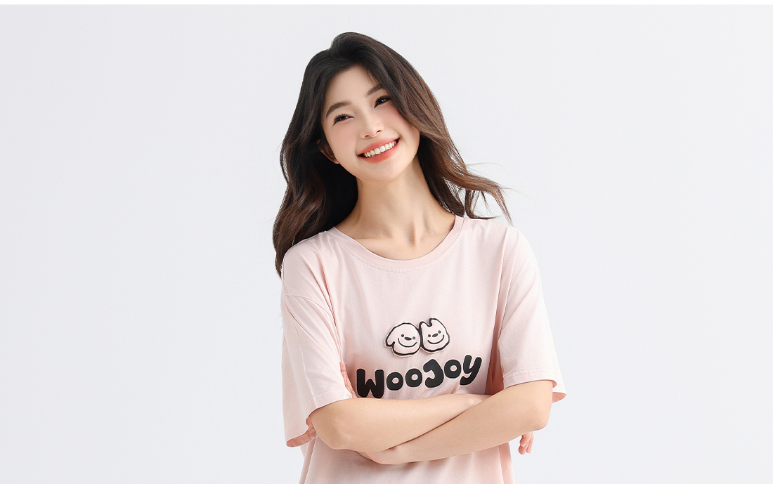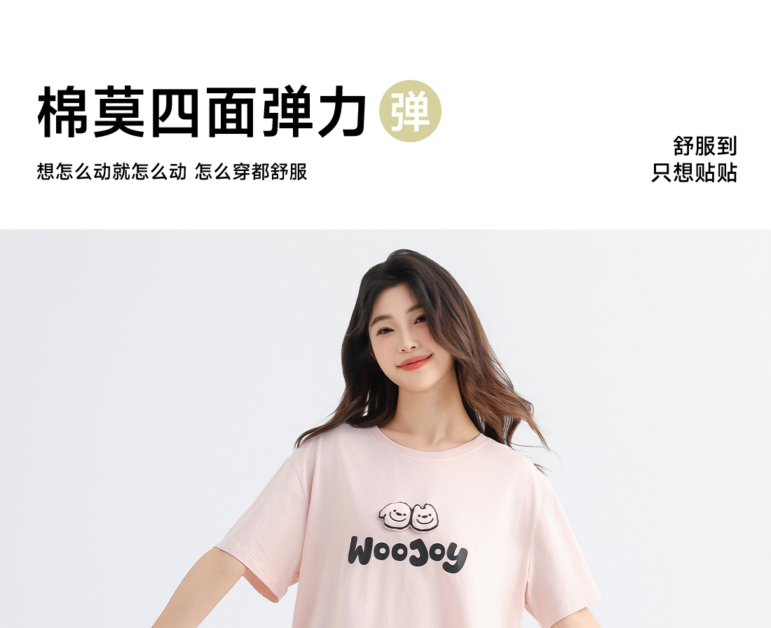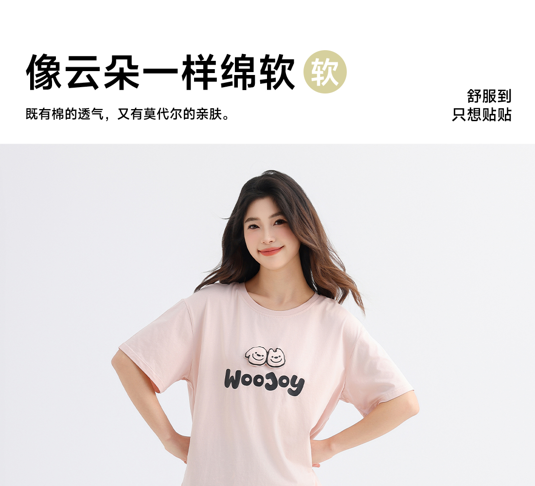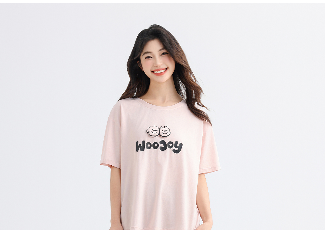 美季美优女士棉莫卡通字母短袖套装