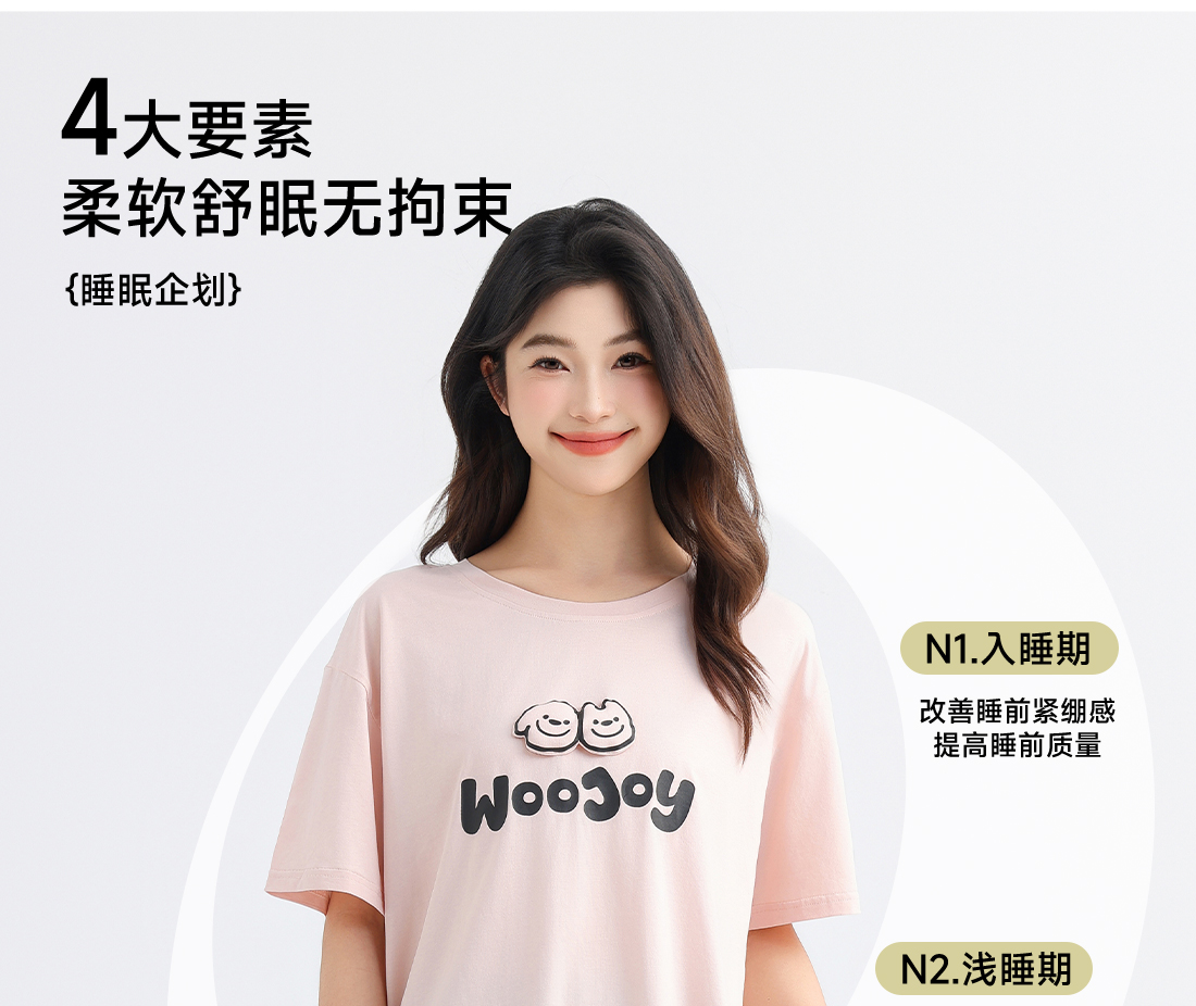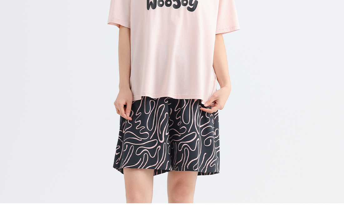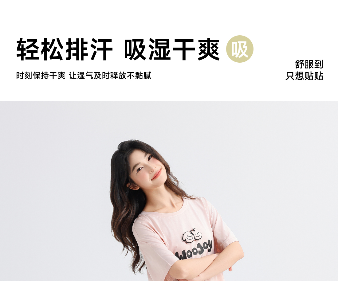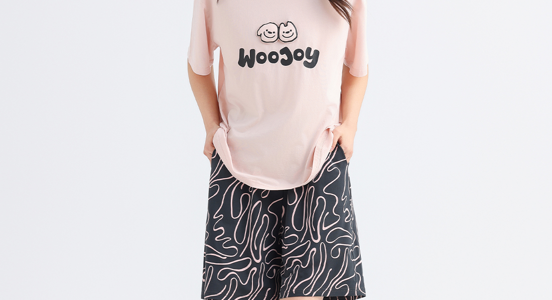 美季美优女士棉莫卡通字母短袖套装