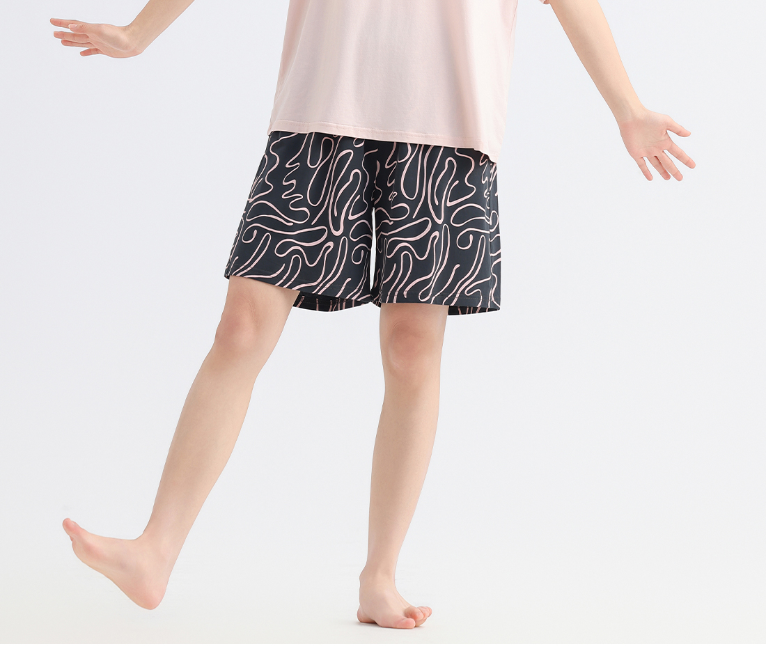 美季美优男士丝质简约印花短袖套装J426401