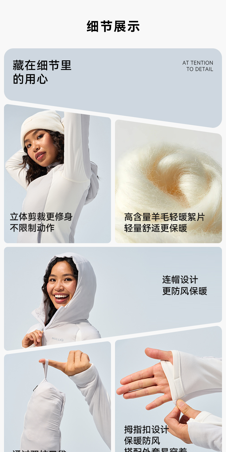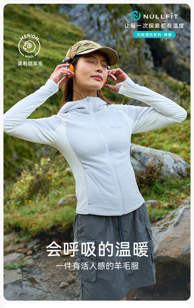 新品🔥NULLFIT可机洗秋冬户外美利诺羊毛棉服女士修身跑步防风保暖外套【tbzg】