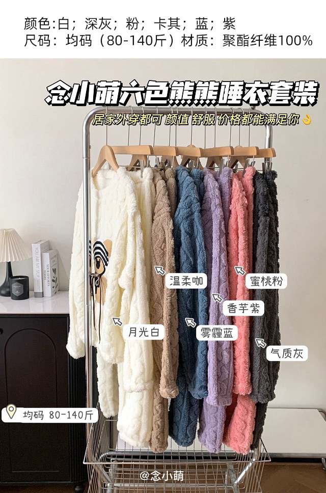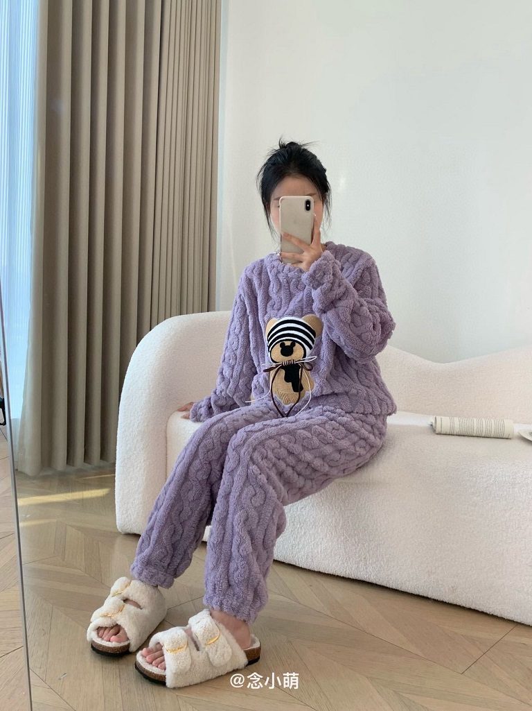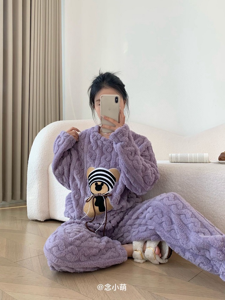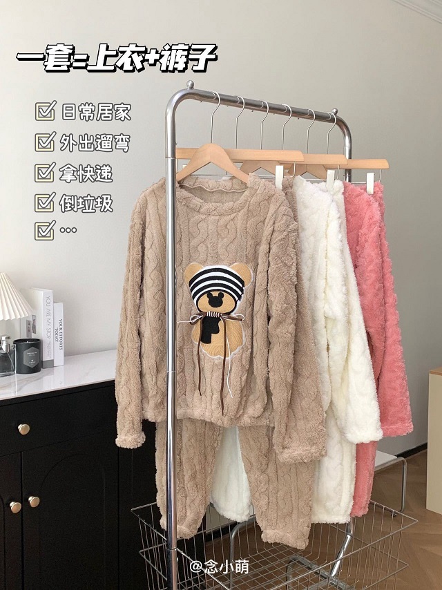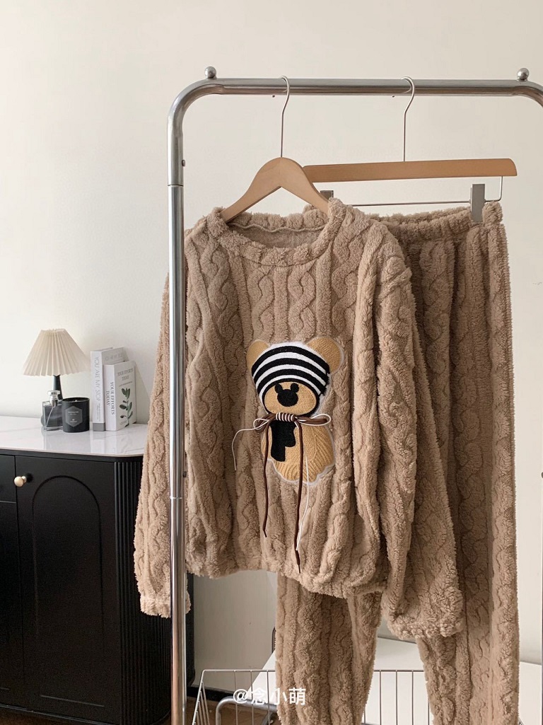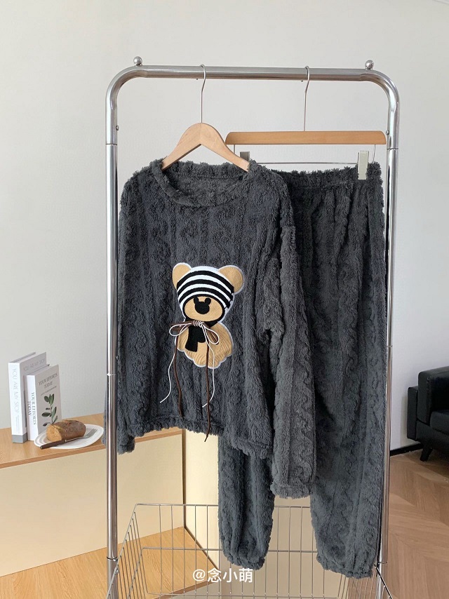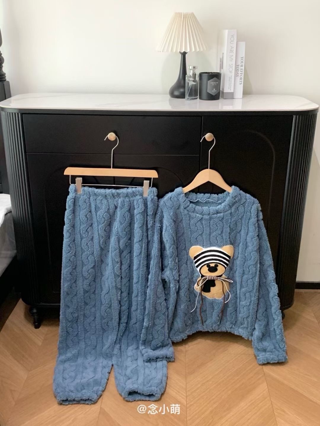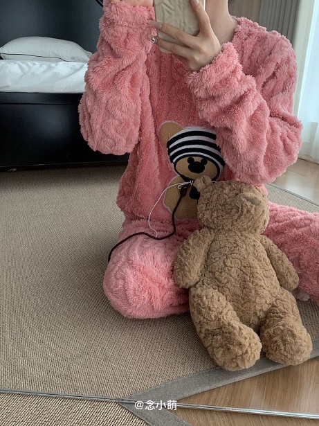 珊瑚绒法兰绒卡通可爱熊家居服睡衣套装167797509(预售3-5天发货)