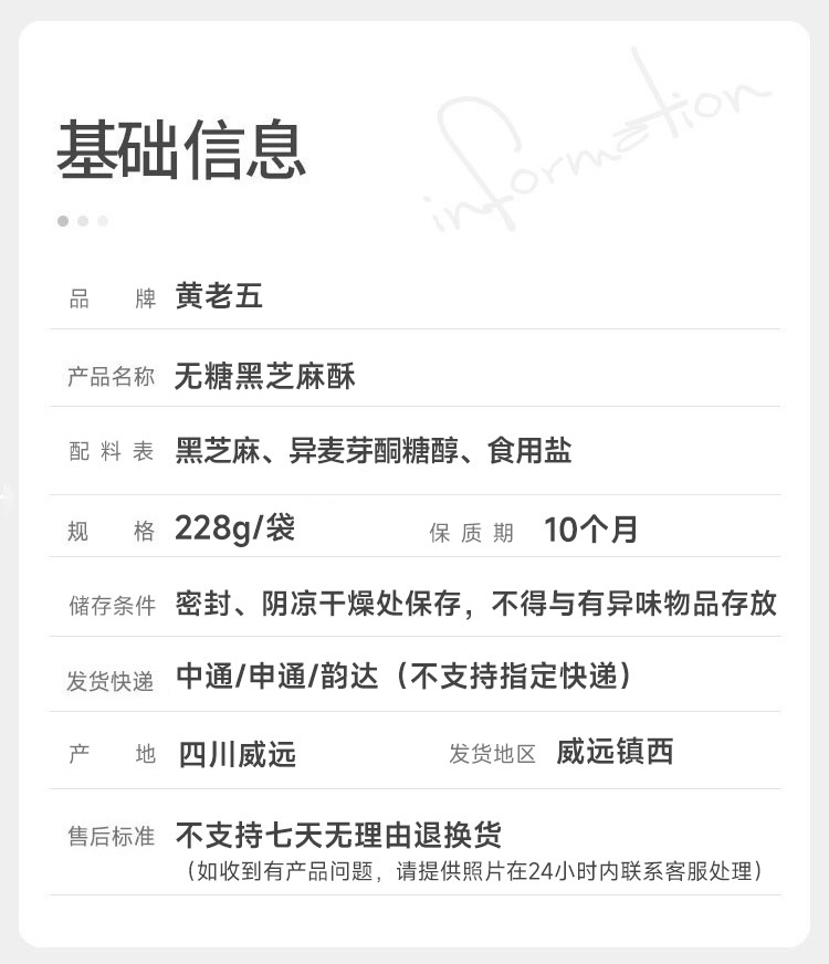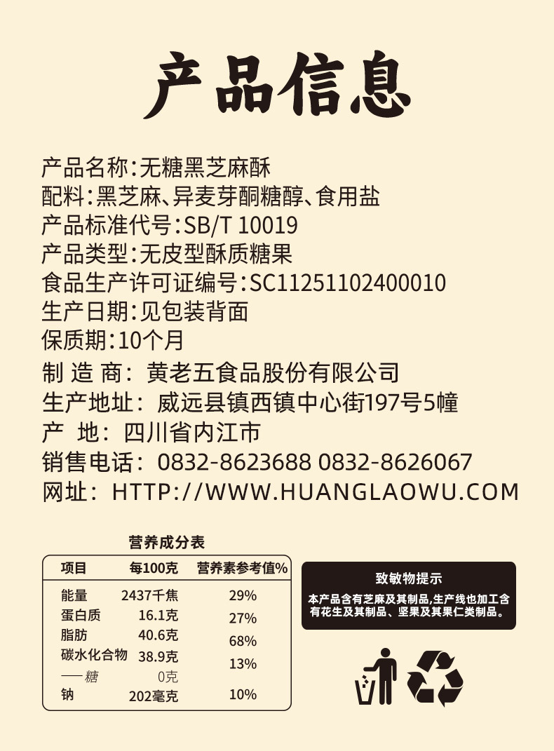 【无糖黑芝麻酥】优选原料 营养健康 82%江西一级黑芝麻仁 芝麻饱满 香味浓郁AA