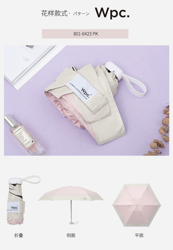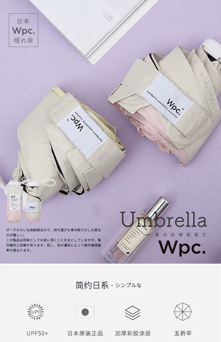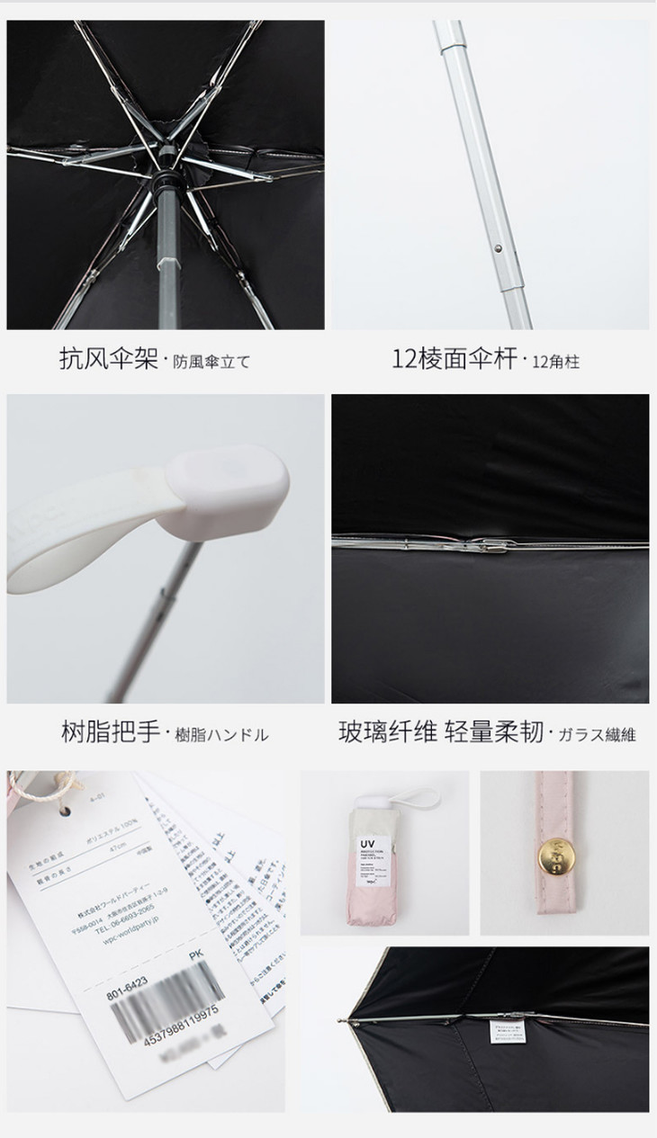 【日本WPC超轻防晒伞,伞下降11度】五折超轻99%防UV紫外线晴雨伞,黑胶涂层遮阳太阳伞UPF50+
