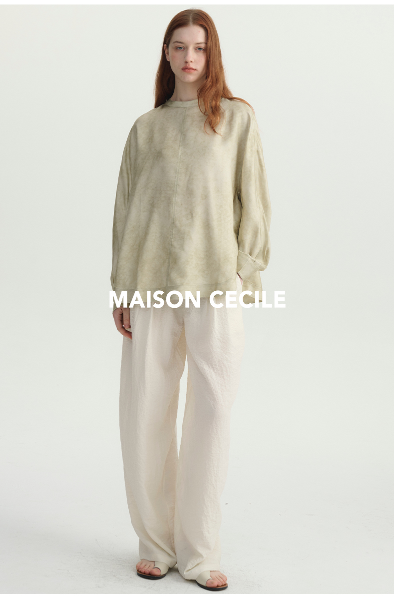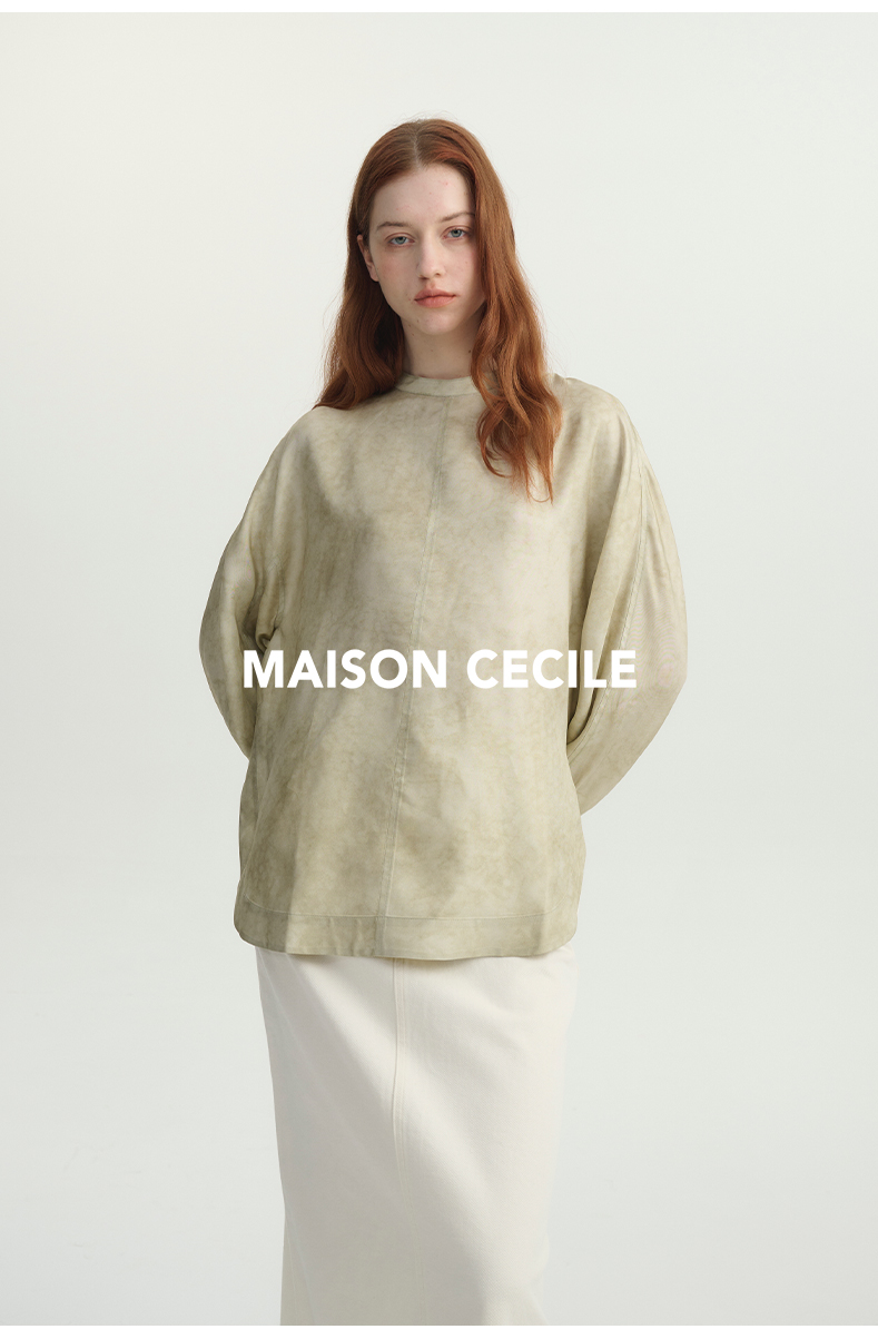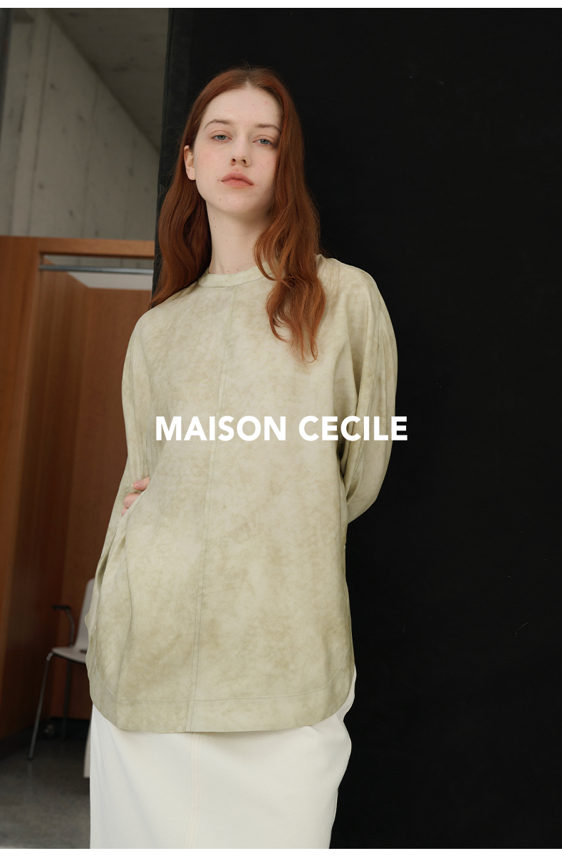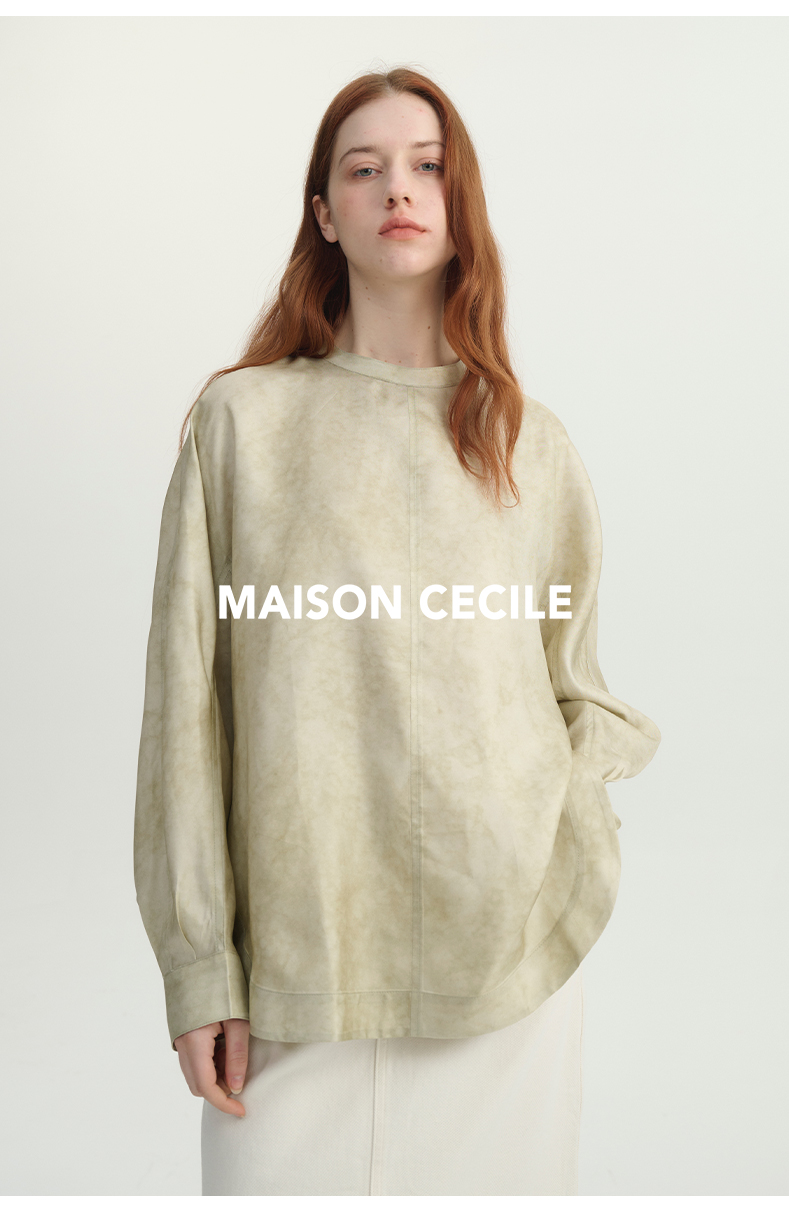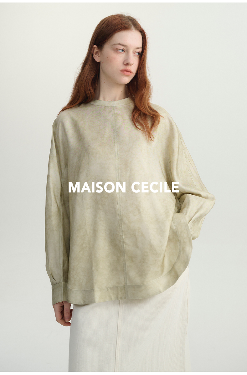 MAISON CECILE晕染灰绿色桑蚕丝随性风宽松上衣