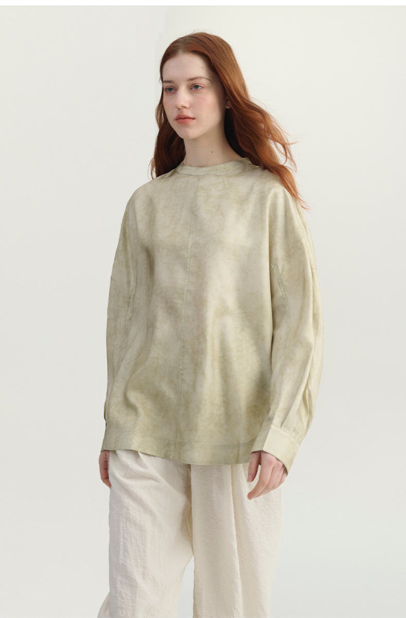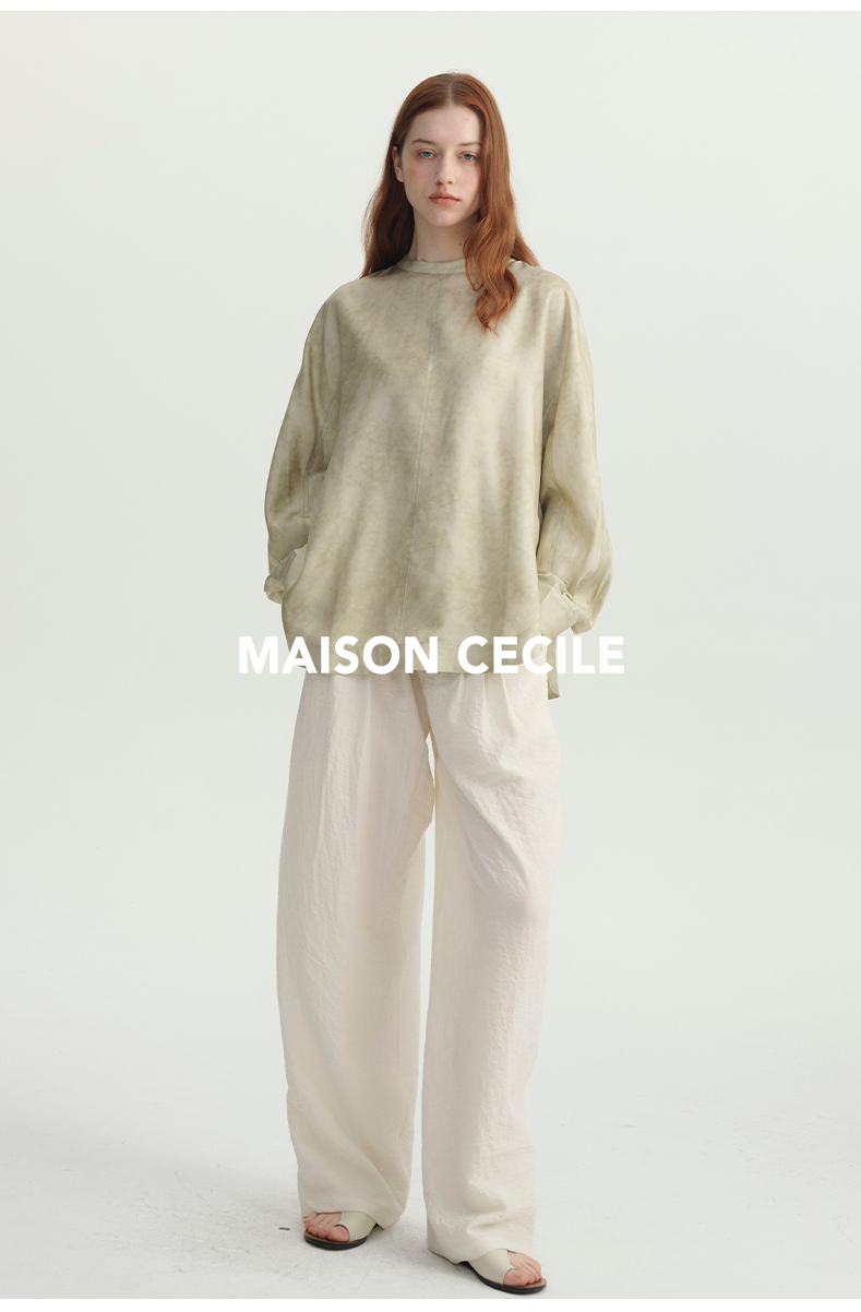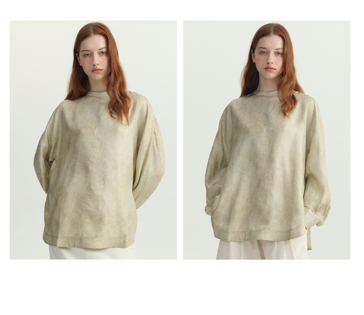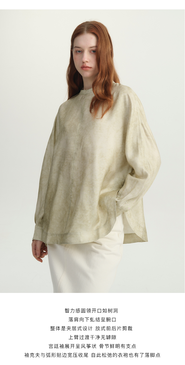 MAISON CECILE晕染灰绿色桑蚕丝随性风宽松上衣